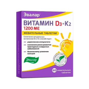 ВИТАМИН Д3 1200МЕ+К2 ЖЕВАТЕЛЬНЫЕ ТАБЛЕТКИ 60 ШТ ЭВАЛАР