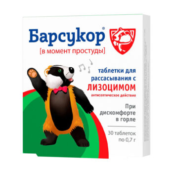 БАРСУКОР С ЛИЗОЦИМОМ ПРИ ДИСКОМФОРТЕ В ГОРЛЕ ТАБЛЕТКИ 30 ШТ