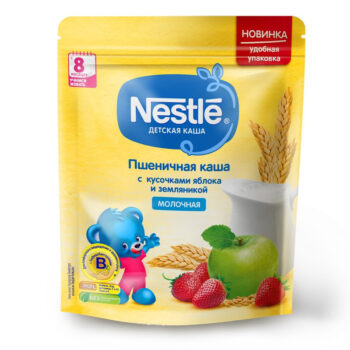 Нестле Каша молочная пшеничная Яблоко Земляникой 220г zip пакет