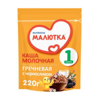 Малютка 220гр каша молочная гречневая с черносливом