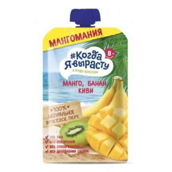 Пюре детское Когда я вырасту яблоко, манго, банан, киви 180г с 8 мес мягкий пакет