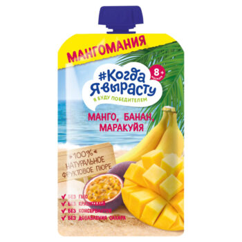 Пюре детское Когда я вырасту яблоко, манго, банан, маракуйя 180г с 8 мес мягкий пакет