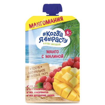 Пюре детское Когда я вырасту яблоко, манго, малина 180г с 6 мес мягкий пакет