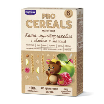 Нутрилак Premium PRO CEREALS Каша молочная Мультизлаковая с яблоком и малиной цельнозерновая 200 гр