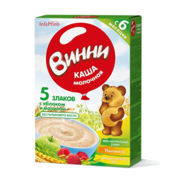 Каша Винни молочная 5 злаков с яблоками и малиной 200г