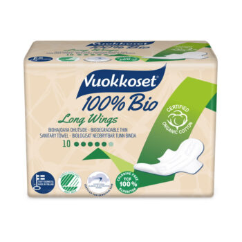 Vuokkoset 10 BIO 100% Лонг Вингс, Прокладки женские гигиенические (с крылышками)