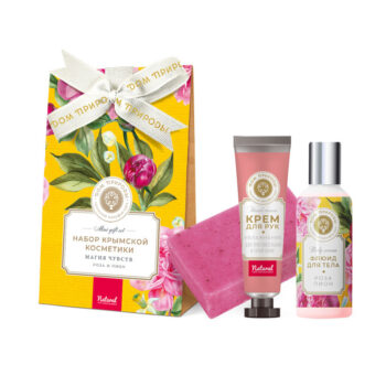 МДП Набор косметики МАГИЯ ЧУВСТВ Роза и пион Флюид для тела Роза и Пион 100г, Кусок мыла Роза и Пион 100г,Крем для рук Увлажнение 30г