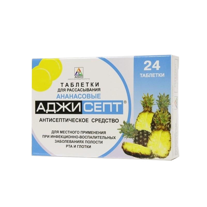 Желтые круглые двояковыпуклые пастилки, обладающие вкусом ананаса и кислым привкусом. | Состав+Одна пастилка для рассасывания содержит2,4-дихлорбензиловый спирт…….1,20 мгамилметакрезол……………………0,60 мг | Противопоказания+- повышенная чувствительность к компонентам препарата- детский возраст до 5 лет | Побочные действия+- редко: аллергические реакции | Способ применения+Взрослым: по 1 пастилке каждые 2 часа. Максимальная суточная доза — 8 пастилок.Детям старше 5 лет: по 1 пастилке каждые 4 часа.Пастилки рассасывают до полного растворения. | Показания к применению+- инфекционно-воспалительные заболевания полости рта и глотки | Объем: