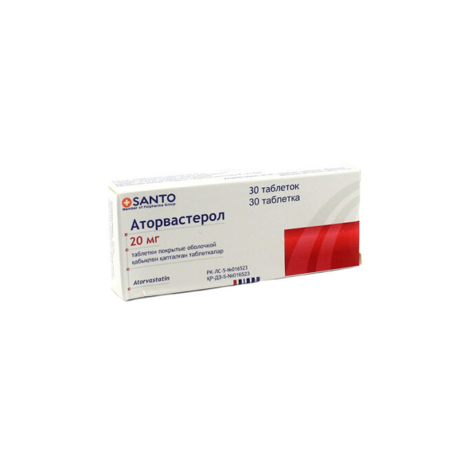 Таблетки, покрытые оболочкой белого или почти белого цвета, овальной формы с двояковыпуклой поверхностью (для дозировки 10 мг)Таблетки, покрытые оболочкой белого или почти белого цвета, круглой формы с двояковыпуклой поверхностью, на одной стороне имеется риска (для дозировки 20 мг)Таблетки, покрытые оболочкой белого или почти белого цвета, овальной формы с двояковыпуклой поверхностью, на одной стороне имеется риска (для дозировки 40 мг) | Состав+Одна таблетка содержитактивное вещество — аторвастатина кальция тригидрат 10.84 мг 21.68 мг 43.36 мг(в пересчете на аторвастатин) (10.000) (20.000) (40.000) | Противопоказания+Гиперчувствительность к действующему веществу или к любому из вспомогательных веществактивное заболевание печени или повышение активности трансаминаз сыворотки (более чем в 3 раза по сравнению с верхней границей нормы) неясного генезабеременность и период лактации, а также женщины репродуктивного возраста, не пользующиеся адекватными методами контрацепции.Необходимые меры предосторожности при примененииДействие на печеньДо начала лечения и периодически во время лечения необходимо контролировать показатели функции печени. При развитии у пациентов любых проявлений или симптомов, свидетельствующих о нарушении следует провести у них определение биохимических показателей ее функции. При повышении активности трансаминаз их уровень следует контролировать вплоть до нормализации. Если активность трансаминаз, более чем в три раза превышающая верхнюю границу нормы (ВГН), сохраняется, рекомендуется снизить дозу или отменить прием АТОРВАСТАТИН-САНТО®.Следует с осторожностью применять АТОРВАСТАТИН-САНТО® у пациентов, злоупотребляющих алкоголем и/или имеющих в анамнезе заболевания печени. Профилактика инсультов путем агрессивного снижения уровня холестерина (Stroke Prevention by Agressive Reduction in Cholesterol Levels — SPARCL).По данным post-hoc анализа подтипов инсульта у пациентов без ишемической болезни сердца (ИБС), недавно перенесших инсульт или транзиторную ишемическую атаку (ТИА), частота геморрагического инсульта была выше у пациентов, которые первоначально получали аторвастатин в дозе 80 мг, по сравнению с плацебо. Повышенный риск особенно часто отмечался у пациентов, перенесших геморрагический инсульт или лакунарный инфаркт на момент включения в исследование. Для пациентов, перенесших геморрагический инсульт или лакунарный инфаркт, соотношение риска и пользы аторвастатина в дозе 80 мг неизвестно, поэтому перед началом лечения необходимо тщательно проанализировать потенциальный риск возникновения геморрагического инсульта.Влияние на скелетную мускулатуруКак и другие ингибиторы ГМГ-КоА — редуктазы, аторвастатина в редких случаях может оказывать влияние на скелетные мышцы и вызывать развитие миалгии, миозита и миопатии, которые могут прогрессировать до рабдомиолиза (потенциально опасного для жизни состояния), который характеризуется выраженным повышением уровня креатининкиназы (КК) (в › 10 раз выше ВГН), миоглобинемией и миоглобинурией, которые могут привести к развитию почечной недостаточности.Имеются очень редкие сообщения иммуноопосредованной некротизирующей миопатии (ИОНМ) во время или после лечения некоторыми статинами. ИОНМ клинически характеризуется стойкой слабостью проксимальной мускулатуры и повышенным уровнем кре