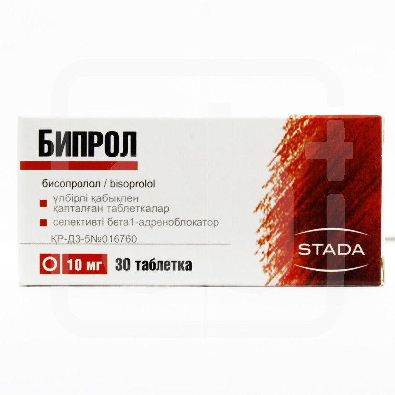 Круглые, двояковыпуклые таблетки, покрытые плёночной оболочкой жёлтого (для дозировки 5 мг) или темно-жёлтого (для дозировки 10 мг) цвета. На поперечном срезе видны два слоя, внутренний слой белого или белого с едва заметным кремоватым оттенком цвета. | Состав+Одна таблетка содержитбисопролола фумарат 5 мг или 10 мг | Противопоказания+- гиперчувствительность к компонентам препарата и другим -адреноблокаторам- шок (в том числе кардиогенный), коллапс, отек легких, острая сердечная недостаточность, хроническая сердечная недостаточность в стадии декомпенсации- AV блокада II-III ст., синоатриальная блокада, синдром слабости синусового узла, выраженная брадикардия (ЧСС менее 45-50 уд./мин), стенокардия Принцметала- кардиомегалия (без признаков сердечной недостаточности)- артериальная гипотензия (систолическое АД менее 100 мм рт.ст., особенно при инфаркте миокарда)- бронхиальная астма и хроническая обструктивная болезнь легких в анамнезе- одновременный приём ингибиторов моноаминооксидазы (МАО) (за исключением МАО-В)- поздние стадии нарушения периферического кровообращения, болезнь Рейно- феохромоцитома (без одновременного использования альфа-адреноблокаторов)- метаболический ацидоз- детский и подростковый возраст до 18 лет- беременность и период лактации | Побочные действия+- повышенная утомляемость, слабость, головокружение, головная боль, расстройства сна, депрессия, беспокойство, спутанность сознания или кратковременная потеря памяти, галлюцинации, астения, миастения, парестезии в конечностях (у больных с «перемежающейся» хромотой и синдромом Рейно), тремор- нарушения зрения, уменьшение секреции слёзной жидкости, сухость и болезненность глаз, конъюнктивит- синусовая брадикардия, сердцебиение, нарушение проводимости миокарда, AV блокада (вплоть до развития полной поперечной блокады и остановки сердца), аритмии, ослабление сократимости миокарда, развитие (усугубление) хронической сердечной недостаточности (отёчность лодыжек, стоп; одышка), снижение АД, ортостатическая гипотензия, проявления ангиоспазма (усиление нарушения периферического кровообращения, похолодание нижних конечностей, синдром Рейно), боль в груди- сухость слизистой оболочки полости рта, тошнота, рвота, боль в животе, запоры или диарея, нарушения функций печени (потемнение мочи, желтушность склер или кожи, холестаз), изменения вкуса- чувство заложенности носа, затруднение дыхания при приёме препарата в высоких дозах (утрата селективности) и/или у предрасположенных пациентов — ларинго- и бронхоспазм- гипергликемия (у больных инсулинонезависимым сахарным диабетом), гипогликемия (у больных, получающих инсулин), гипотиреоидное состояние- кожный зуд, сыпь, крапивница- усиление потоотделения, гиперемия кожи, экзантема, псориазоподобные кожные реакции, обострение симптомов псориаза- тромбоцитопения (необычные кровотечения и кровоизлияния), агранулоцитоз, лейкопения, изменение активности ферментов печени (повышение АЛТ, АСТ), уровня билирубина, триглицеридов- влияние на плод: внутриутробная задержка роста, гипогликемия, брадикардия- боли в спине, артралгии- ослабление либидо, снижение потенции- синдром «отмены» (усиление приступов стенокардии, повышение АД) | Способ применения+Препарат принимается внутрь, однократно, утром натощак. Таблетку следует проглатывать цели