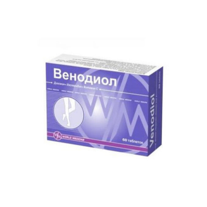 Овальные таблетки от палевого до светло – коричневого цвета с вкраплениями. | Состав+1 таблетка содержит:Диосмин 450 мг,Гесперидин 50 мг,Аскорбиновая кислота 100 мг | Противопоказания+Препарат противопоказан при гиперчувствительности к любому из компонентов препарата. | Побочные действия+Побочных реакций, повлекших отмену препарата, зарегистрировано не было. Лишь у некоторых больных в первые дни приема Венодиола отмечают вегетативные реакции (повышенную слабость, головокружение, чувство жара и покалывание в коже нижних конечностей). Появление этих симптомов не является поводом для отмены препарата, так как они, спустя 2-3 недели, обычно спонтанно проходят. | Способ применения+Важной особенностью препарата Венодиол, значительно упрощающей его применение, является стандартная суточная дозировка.Возможны два равнозначных способа приема препарата:- назначение препарата по 1 таблетке (500 мг) 2 раза в сутки во время еды на весь период лечения;- другой вариант дозирования предполагает прием Венодиола по 1 таблетке 2 раза в сутки первые две недели, а затем по 2 таблетки (1000 мг) 1 раз в сутки во время еды.Опыт применения препарата свидетельствует о том, что длительность приема Венодиола прямо пропорциональна исходной тяжести заболевания.При лечении начальных форм хронической венозной недостаточности, проявляющихся синдромом «тяжелых ног», обычно достаточно 2 –месячного курса, повторяемого по мере необходимости, обычно 2-3 раза в год.В более тяжелых случаях, когда превалируют болевой, судорожный и отечный синдромы прием Венодиола необходимо продолжать в течение 3-4 месяца.Лечение венозных трофических язв может потребовать и более длительного курса – 6 месяцев и более.При остром приступе геморроя назначают по 6 таблеток в сутки в течение первых 4 дней, затем – по 4 таблетки в сутки в течение последующих 3 дней.Назначая Венодиол, важно помнить, что к этому препарату не возникает привыкания. | Показания к применению+- Хроническая венозная недостаточность нижних конечностей функциональной и органической природы: ощущение тяжести в ногах, боли, судороги, трофические нарушения;- остром геморроидальном приступе. | Объем: ТаблеткиАртикул: A02-0023421