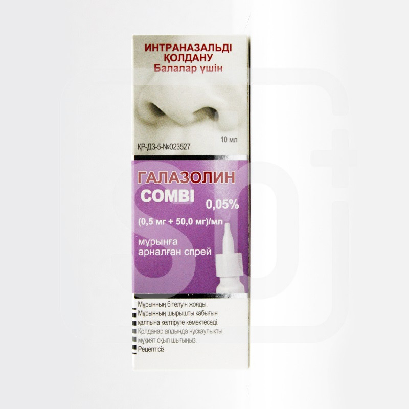 Прозрачный раствор. | Состав+1 мл раствора содержитГалазолин Combi 0,05%0,5 мг ксилометазолина гидрохлорида и 50,0 мг декспантенола.Галазолин Combi 0,1%1,0 мг ксилометазолина гидрохлорида и 50,0 мг декспантенола | Противопоказания+- Повышенная чувствительность к ксилометазолину гидрохлориду, декспантенолу или какому-либо из вспомогательных веществ препарата.- Сухой ринит (rhinitis sicca).- После хирургических вмешательств, проводимых эндоназальным методом и после операций, протекающих со вскрытием твердой мозговой оболочки.- Детский возраст до 2 лет (для Галазолин Combi 0,05%).- Детский возраст до 6 лет (для Галазолин Combi 0,1%).- Период беременности и лактации. | Побочные действия+Нечасто (возникают реже, чем у 1 на 100 пациентов):- реакции гиперчувствительности (например, ангионевротический отек, крапивница, зуд)Редко (возникают реже, чем у 1 на 1 000 пациентов):- усиленное сердцебиение- тахикардия- повышенное артериальное давлениеОчень редко (возникают реже, чем у 1 на 10 000 пациентов):- возбуждение, бессоница, усталость (например, сонливость, седация), головная боль, галлюцинации (преимущественно у детей)- аритмия- усиление отека слизистой при снижении эффекта препарата, носовое кровотечение- судороги (особенно у детей)Частота неизвестна (нет возможности оценить частоту на основе доступных данных):- чувство жжения и сухость в носу, чихание | Способ применения+Препарат Галазолин Combi предназначен только для интраназального применения.По гигиеническим соображениям упаковку препарата должен использовать только один пациент.Препарат не следует применять более 7 дней. Если по истечении 7 дней не наступит улучшение или пациент почувствует себя хуже, следует обратиться к врачу.Следует всегда консультироваться с врачом относительно продолжительности применения препарата у детей.Следует сделать перерыв на несколько дней перед тем как начать применять препарат снова.Не следует применять дозы выше рекомендованных.Галазолин Combi 0,05%1 доза назального спрея (0,1 мл раствора) содержит 0,05 мг ксилометазолина гидрохлорида и 5,0 мг декспантенола.Дети в возрасте от 2 до 6 летПо одной дозе спрея в каждый носовой ход 1 или 2 раза в сутки (каждые 8-10 часов).Не следует применять более 3 доз препарата в каждый носовой ход в сутки.Ребенку препарат Галазолин Combi 0,05% должны вводить только взрослые.Галазолин Combi 0,1%1 доза назального спрея (0,1 мл раствора) содержит 0,1 мг ксилометазолина гидрохлорида и 5,0 мг декспантенола.Взрослые и дети старше 6 летПо одной дозе спрея в каждый носовой ход 1 или 2 раза в сутки (каждые 8-10 часов).Не следует применять более 3 доз препарата в каждый носовой ход в сутки.Способ применения1. Перед каждым применением препарата следует снять защитную насадку.2. Перед первым использованием нового флакона, после снятия насадки, следует нажать на дозатор 3-5 раз, до появления облачка спрея. Перед последующим применением не обязательно несколько раз нажимать дозатор.3. Наконечник дозатора следует ввести в носовой ход.4. Удерживая флакон в вертикальном положении, следует нажать дозатор, что приводит к распылению дозы препарата в носовой полости.5. Повторить процедуру при введении препарата в другой носовой ход.6. После использования следует надеть защитную насадку. | Показания к применению+Симптоматическое лечение непроходимости носовых ходов во время простудных заболеваний и после х