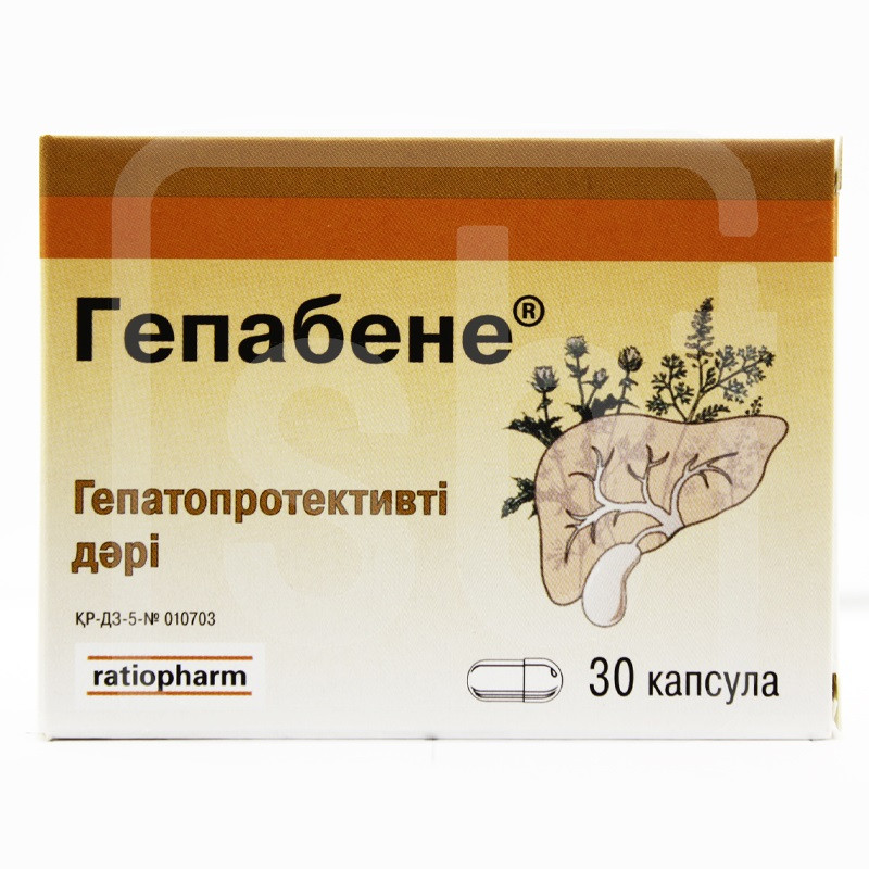 Светло-коричневые твердые желатиновые капсулы, содержащие оранжево-коричневый порошок | Состав+I капсула содержитэкстракт дымянки 275,0 мгсухой экстракт расторопши 70,0 — 100,0 мг | Противопоказания+- повышенная индивидуальная чувствительность к компонентам препарата- острые воспалительные заболевания печени и желчевыводящих путей | Побочные действия+- аллергические реакции- послабляющее действие и увеличение диуреза | Способ применения+Капсулы Гепабене принимают внутрь во время еды, не разжевывая, запи-вая небольшим количеством воды.Взрослым препарат обычно назначают по 1 капсуле 3 раза в сутки. При ночном болевом синдроме рекомендуется дополнительно принимать еще 1 кап-сулу перед сном. При необходимости суточную дозу препарата Гепабене можно увеличить до 6 капсул (максимальная суточная доза) в 3 — 4 приема. Средняя продолжительность курса лечения — 4 недели | Показания к применению+В составе комплексной терапии:- дискинезия желчевыводяших путей (дисфункции билиарного тракта), в том числе после холецистэктомии- хронический гепатит- хронические токсические поражения печени | Артикул: A02-0000350
