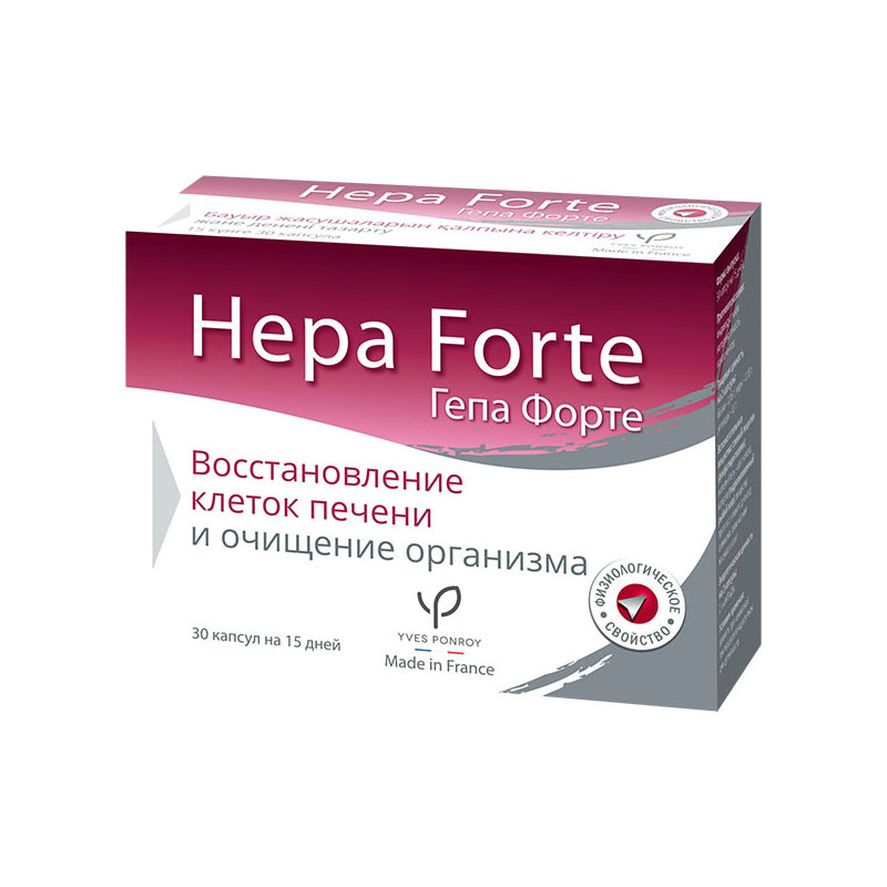 Состав+Экстракт расторопши пятнистой 200 мг, витамин С 30 мг, витамин Е 10 мг, лецитин (фосфатидилхолин) 30 мг и глутатион 1 мг. | Противопоказания+Индивидуальная непереносимость компонентов препарата. | Способ применения+Для достижения наилучшего эффекта, необходимо принимать 2 капсулы утром во время еды | Показания к применению+Гепа Форте оказывает выраженное гепатозащитное действие: подавляет нарастание индикаторных ферментов, тормозит процессы цитолиза, препятствует развитию холестаза. У больных с диффузными поражениями печени, в том числе алкогольного генеза, нормализует функционально-морфологические показатели гепатобилиарной системы, клинические показатели. Проявляет антиоксидантные и радиопротекторные свойства, усиливает детоксицирующую и внешнесекреторную функции печени, оказывает спазмолитическое и противовоспалительное действие. | Объем: Без дозировкиАртикул: A02-0001764
