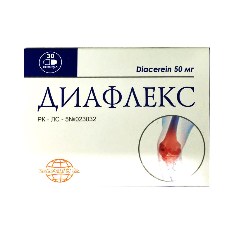 Непрозрачные твердые желатиновые капсулы, глянцевые, тело и крышка цвета охры. Содержимое капсул — гомогенный порошок желтого цвета. | Состав+Одна капсула содержит:диацереин 50.0 мг | Противопоказания+- Повышенная чувствительность к диацереину, другим антрахиноновым препаратам или вспомогательным компонентам препарата- колопатия (язвенный ректоколит, болезнь Крона)- окклюзионный или субокклюзионный синдром- болевые абдоминальные синдромы по неустановленным причинам- текущие заболевания печени и заболевания печени в анамнезе- детский и подростковый возраст до 18 лет- беременность и период лактации.С осторожностью назначают пациентам с раздражением нижних отделов кишечника, при хронической почечной недостаточности. | Побочные действия+Очень часто (больше или равно 1/10)- диарея, абдоминальные болиЧасто (больше или равно 1/100 и ‹1/10)- зуд, сыпь, экзема- бессонница, сонливость, тревожные сны, головная боль, головокружение- усиление кишечной перистальтики, метеоризмНечасто (больше или равно 1/1000 и ‹1/100)- повышение активности ферментов печениКак правило, при продолжении лечения эти явления ослабевают. Выявлены случаи развития тяжелой диареи с обезвоживанием и нарушением водно-электролитного баланса. Редко наблюдается пигментация слизистой оболочки толстой кишки (меланоз).Постмаркетинговые наблюденияГепатобилиарные нарушенияВ пострегистрационном периоде наблюдения выявлены случаи острого поражения печени, включая повышение активности печеночных ферментов и развитие гепатита. Большинство случаев зафиксированы в течение первого месяца применения диацереина. Необходимо обеспечить контроль состояния пациентов для раннего выявления симптомов поражения печени. | Способ применения+Назначение диацереина должен выполнять специалист с опытом лечения остеоартрита.Рекомендуемая доза: по одной капсуле два раза в день во время приема пищи (утром и вечером). Капсулы нужно проглатывать целиком и запивать стаканом воды.Поскольку у некоторых пациентов может развиться жидкий стул (диарея), рекомендуется начинать прием диацереина по 50 мг один раз в день с вечерним приемом пищи в течение первых 2-4 недель. Затем возможно применение по 50 мг два раза в день с пищей, один раз с утренним приемом пищи, второй — с вечерним приемом пищи.Терапевтический эффект наблюдается через 2-4 недели, значительное клиническое улучшение наступает спустя 4-6 недель, эффект сохраняется в течение примерно двух месяцев после лечения (так называемый «перенос эффекта»).Как при любом длительном лечении, каждые шесть месяцев необходимо контролировать анализ крови, включая определение ферментов печени и анализ мочи.Учитывая очень хорошую гастродуоденальную переносимость, диацереин может быть назначен в течение первых 2-4 недель вместе с НПВС или анальгетиками.Почечная недостаточностьУ пациентов с умеренной почечной недостаточностью (креатинин 30-49 мл/мин) изменения дозировки не требуется. У пациентов с тяжелой почечной недостаточностью (клиренс креатинина ‹30 мл/мин) дозу уменьшают на 50%.Пожилые людиНет необходимости регулировать дозировку для пациентов пожилоговозраста.Применять строго по назначению врача. | Показания к применению+- Симптоматическое лечение остеоартрита тазобедренного и коленного суставов при отсутствии необходимости достижения быстрог