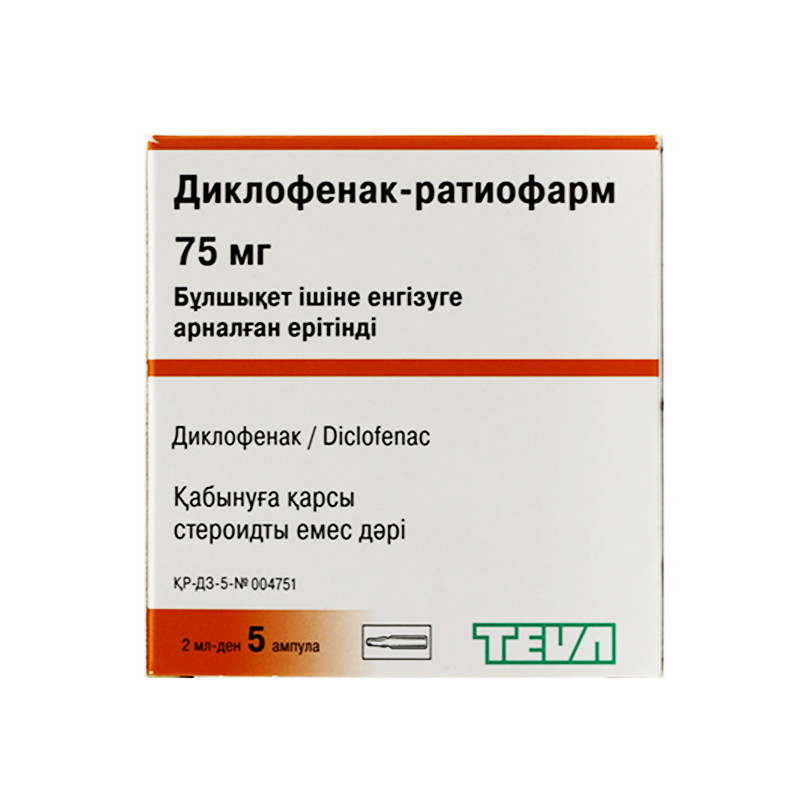 Прозрачный раствор от бесцветного до светло-желтого цвета | Состав+Одна ампула содержитдиклофенак натрия 75,0 мг | Противопоказания+- Гиперчувствительность к диклофенаку, либо к другим компонентам лекар-ственного препарата, анестетикам- Полное или неполное сочетание бронхиальной астмы, рецидивирующего полипоза носа и околоносовых пазух и непереносимость ацетилсалициловой кислоты или других НПВП- Язвенная болезнь желудка и/или кишечника, пептические язвы или кровоте-чения (не менее 2-х эпизодов), в т.ч. в анамнезе- Желудочно-кишечное кровотечение или прободение в связи с применением НПВП- Нарушения картины крови неясного генеза- Церебро-васкулярное или другое активное кровотечение- Тяжелая сердечная недостаточность, тяжелые нарушения сердечной прово-димости, брадикардия, кардиогенный или гиповолемический шок- Тяжелое нарушение функции печени и почек- Период беременности и лактации- Детский и подростковый возраст до 18 лет | Побочные действия+Иногда- головная боль, нарушения сна, чувство усталости, раздражительность, воз-будимость, головокружение, расстройства памяти, дезориентация, ощущение страха, судороги, тремор, депрессии, сонливость- нарушения вкуса, расстройства зрения (двоение в глазах или нечеткость восприятия), шум в ушах с нарушением слуха- тошнота, рвота, понос, в том числе, с примесью крови, которые в исключи-тельных случаях могут привести к анемии- отсутствие аппетита, спазмы в животе, ощущение переполнения- поражения желудочно-кишечного тракта, которые могут сопровождаться изъязвлениями слизистой, что в редких случаях приводит к появлению крови в стуле или кровавой рвоте или поносу, сопровождающимися сильными бо-лями в эпигастрии- повышение уровня трансаминаз в сыворотке- гепатит с или без желтухи, в отдельных случаях молниеносное течение ге-патита без продромального синдрома- нарушение функции почек, протеинурия, гематурия или поражение почек (интерстициальный нефрит, нефротический синдром, некроз сосочков)- зуд, сыпь- аллергические реакции (крапивница, отек, бронхоспазм, расстройства ды-хания)Редко- симптоматика асептического менингита с напряжением затылочных мышц, головными болями, тошнотой, рвотой, повышением температуры тела и на-рушением сознания. Предрасположенными к таким реакциям являются боль-ные с аутоиммунными заболеваниями (системная красная волчанка, смешан-ные коллагенозы)- пневмонит- стоматит, воспаления языка, язвы пищевода, жалобы на боли внизу живота (неспецифические кровоточащие воспаления толстого кишечника, обостре-ние болезни Крона или язвенного колита), запоры; воспаление поджелудоч-ной железы (панкреатит)- уменьшение объема выделяемой мочи, отеки, общее чувство разбитости, признаки почечной недостаточности- крапивница, выпадение волос, повышенная чувствительность к свету, экзе-мы, эритемы, точечные кровоизлияния в кожу- нарушение кроветворения (анемия, лейкопения, агранулоцитоз, тромбоци-топения) редко. Первыми признаками могут быть — повышение температуры тела, боли в горле, поверхностные раны во рту, жалобы на гриппоподобное состояние, кровотечения из носа и кожи, состояние прострации.Очень редко- гемолитическая анемия- синдром Стивенс-Джонсона, синдром ЛайеллаДиклофенак тормозит агрегацию тромбоцитов, что требует постоянного контроля гемостаза у больных с нарушен