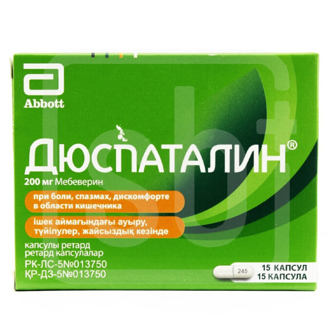 Твердые желатиновые капсулы размера № 1 с корпусом и крышечкой белого цвета, с маркировкой «S» с треугольником внизу на крышечке и «245» — на кор-пусе. Содержимое капсул — белые или почти белые гранулы. | Состав+Одна капсула ретард содержитмебеверина гидрохлорид 200 мг | Противопоказания+- гиперчувствительность к активному ингредиенту или любому вспомогатель-ному компоненту препарата- детский возраст до 18 лет | Побочные действия+аллергические реакции: зуд, крапивница, экзантема, отек лица, отек Квинке | Способ применения+Капсулы принимают внутрь, запивая достаточным количеством воды (не менее 100 мл). Проглатывать целиком, не разжевывая.ВзрослыеПо 200 мг (1 капсула) 2 раза в сутки (утром и вечером). | Показания к применению+функциональные расстройства желудочно-кишечного тракта, связанные с синдромом раздраженной толстой кишки, в том числе абдоминальные боли и спазмы, чувство дискомфортаспастические состояния желудочно-кишечного тракта, обусловленные орга-ническими заболеваниями внутренних органов | МНН: МебеверинОбъем: 200 мгАртикул: A01-0011557