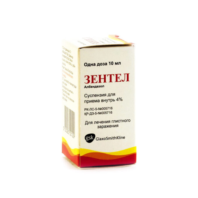 Суспензия от белого до кремового цвета с запахом апельсина и ванили. | Состав+альбендазол 4.0 г | Противопоказания+- гиперчувствительность к альбендазолу и другим компонентамлекарственного средства- патология сетчатки глаза- беременность, период лактации | Побочные действия+- реакции повышенной чувствительности, включая сыпь, зуд и крапивницу- головная боль и головокружение- боль в животе, тошнота, рвота и диарея- повышение уровня печеночных энзимов, гепатит- эритемы различного генеза, синдром Стивенсона-Джонсона, обратимаяалопеция (поредение и умеренная потеря волос)- лейкопения, панцитопения- лихорадка- повышение АД- нарушения функции почек. | Способ применения+Препарат принимают внутрь вместе с приемом пищи. Предпочтителен прием в одно и то же время суток. Если не наступает выздоровления через три недели, прописывается второй курс лечения.Системные гельминтные инфекции(продолжительное лечение более высокими дозами).Детям до 6 лет назначение препарата высокими дозами не рекомендуется. Режим дозирования устанавливается индивидуально в зависимости от возраста, массы тела, а также от степени тяжести инфекции.Доза для пациентов при массе тела больше 60 кг составляет 400 мг 2 раза в сутки. При весе меньше 60 кг препарат назначается из расчета 15 мг/кг/ в сутки. Эта доза должна быть разделенная на 2 приема. Максимальная суточная доза составляет 800 мг. | Показания к применению+- энтеробиоз- анкилостомидоз и некатороз- гименолепидоз- тениоз- стронгилоидоз- аскаридоз- трихоцефалёз- клонорхоз- опистархоз- кожный синдром Larva Migrans- лямблиоз у детей- кистозный эхинококкоз- альвеолярный эхинококкоз- нейроцистициркоз- гепатиколез- гнатостомоз- трихинеллез- токсокароз | МНН: АлбендазолОбъем: 4%Артикул: A01-0000466
