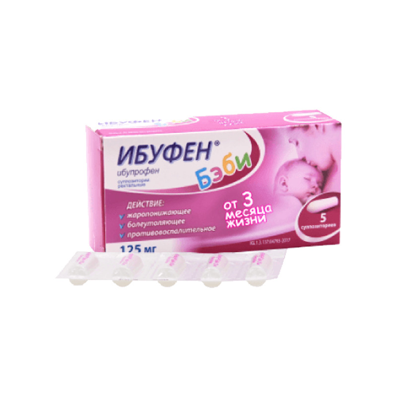 Белые или почти белые суппозитории, торпедообразной формы | Состав+Один суппозиторий содержит:ибупрофена 0,06 г или 0,125 г | Противопоказания+- Гиперчувствительность к ибупрофену или вспомогательным веществам в составе препарата- гиперчувствительность к салицилатам или другим нестероидным противовоспалительным препаратам (НПВП). У пациентов, у которых после применения любого из этих лекарств возник бронхоспазм, отек Квинке, крапивница или ринит, существует повышенный риск появления аллергической реакции из-за перекрестной чувствительности к этим препаратам- наличие в анамнезе кровотечения или перфорации желудочно-кишечного тракта в результате лечения препаратами группы НПВП- активная язва желудка или кровотечение, либо рецидивирующая язва желудка/кровотечение в анамнезе (не менее двух задокументированных случаев изъязвления или кровотечения, либо других желудочно-кишечных расстройств)- тяжелая сердечная недостаточность- тяжелая печеночная/почечная недостаточность.- III триместр беременности- геморрагический диатез- грудные дети с массой тела ниже 6 кг, в возрасте до 3 месяцев (для дозировки 60 мг)- дети с массой тела до 12,5 кг (для дозировки 125 мг). | Побочные действия+При применении препарата побочные действия наблюдаются редко, если применять препарат непродолжительное время в минимальной эффективной дозе, необходимой для устранения симптомов. При лечении хронических заболеваний, при длительном лечении, могут возникнуть дополнительные побочные эффекты.Нежелательные явления, которые могут возникнуть при лечении ибупрофеном, сгруппированы по частоте встречаемости следующим образом: очень часто (больше или равно 1/10), часто (больше или равно 1/100 — ‹1/10), нечасто (больше или равно 1/1000 — ‹1/100), редко (больше или равно 1/10000 — ‹1/1000), очень редко (‹1/10000), неизвестно (невозможно оценить по имеющимся данным).Нарушения со стороны желудочно-кишечного трактаНечасто: боль в животе, тошнота, диспепсия.Редко: диарея, метеоризм, запор, рвота.Очень редко: мелена, рвота кровью, язвенный стоматит, обострение колита и болезни Крона, гастрит, язвенная болезнь желудка, перфорация или желудочно-кишечные кровотечения, иногда со смертельным исходом.Нарушения со стороны нервной системыНечасто: головная боль.Нарушения со стороны почек и мочевыводящих путейОчень редко: острая почечная недостаточность, папиллярный некроз, особенно при длительном лечении, связанный с повышением мочевины в сыворотке крови и отеком.Нарушения со стороны крови и лимфатической системыОчень редко: гемопоэтические нарушения (анемия, лейкопения, тромбоцитопения, панцитопения, агранулоцитоз).Первые признаки могут включать: лихорадку, боль в горле, поверхностные повреждения в ротовой полости, гриппоподобные симптомы, сильную усталость, кровотечения из носа и кровоизлияния в кожу или мягкие подкожные ткани.Нарушения со стороны сердцаОчень редко: при сочетании с лечением НПВП поступали сообщения об отеках, высоком кровяном давлении и сердечной недостаточности.Нарушения со стороны печени и желчевыводящих путейОчень редко: нарушение функции печени, особенно при длительной терапии, холестаз, желтуха, гепатит, повышение уровня ферментов в сыворотке крови.Нарушения со стороны кожи и подкожной клетчаткиОчень редко: тяжелые формы кожных реакций, такие как полиморфная э