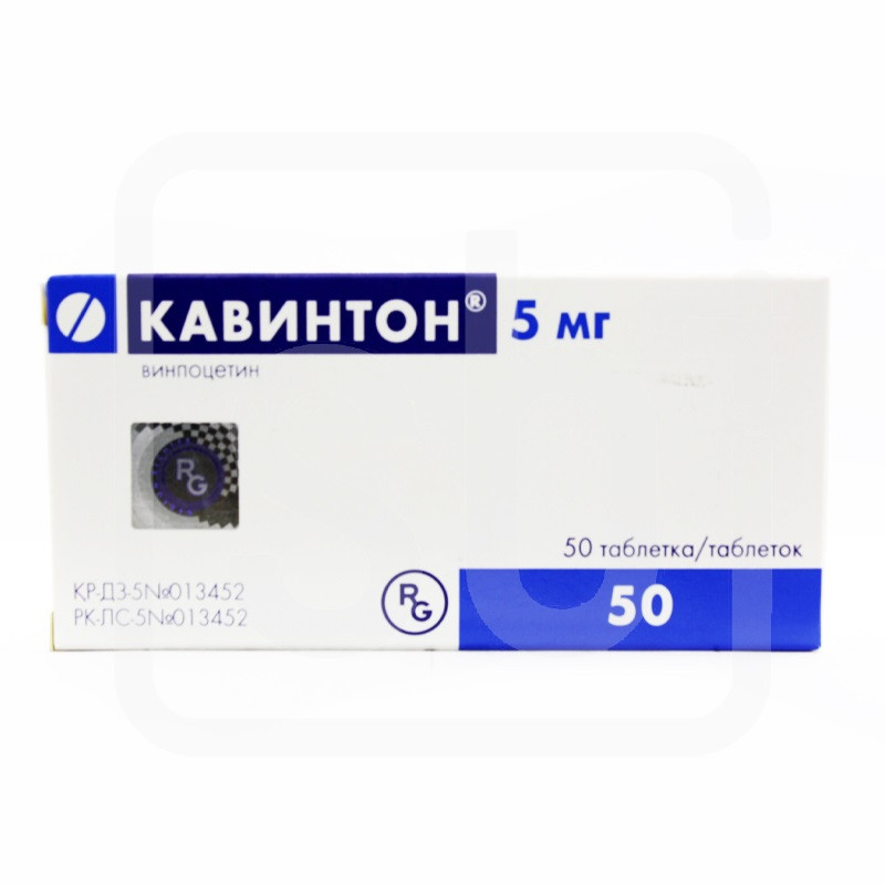 Белые или почти белые, плоские, круглые таблетки с фаской, без запаха, с гравировкой «CAVINTON» на одной стороне, и без гравировки на другой, диаметром около 9 мм. | Состав+Одна таблетка содержит 5 мг винпоцетина | Противопоказания+- повышенная чувствительность к какому-либо компоненту препарата-острая стадия кровоизлияния в мозг-ишемическая болезнь сердца-нарушения сердечного ритма- беременность и период лактации- возраст до 18 лет | Побочные действия+- 0,1%: депрессия ST, удлинение QT, тахикардия, экстрасистолия, однако связи между побочными действиями и лечением Кавинтоном форте не доказано- 0,8%: изменение кровяного давления (чаще снижение), покраснение кожи.Со стороны центральной нервной системы- (0,9%): нарушения сна (бессонница, повышенная сонливость), головокру-жение, головная боль, общая слабость (симптомы могут быть проявлениями основного заболевания)- 0,6%: тошнота, изжога, сухость во рту- 0,2%: аллергические реакции | Способ применения+Принимать внутрь после приёма пищи. Суточная доза 15-30 мг (3 раза в день по 5-10 мг).При заболеваниях печени и/или почек коррекции доз не требуется. | Показания к применению+- состояния после мозгового инсульта- сосудистая деменция- вертебробазилярная недостаточность- атеросклероз сосудов головного мозга- посттравматическая и гипертоническая энцефалопатия- для снятия неврологических и психических симптомов нарушения мозго-вого кровообращения- хронические сосудистые заболевания сосудистой оболочки и сетчатки глаза- снижение слуха перцептивного характера- болезнь Меньера- звон в ушах | МНН: ВинпоцетинОбъем: 5 мгАртикул: A02-0000339