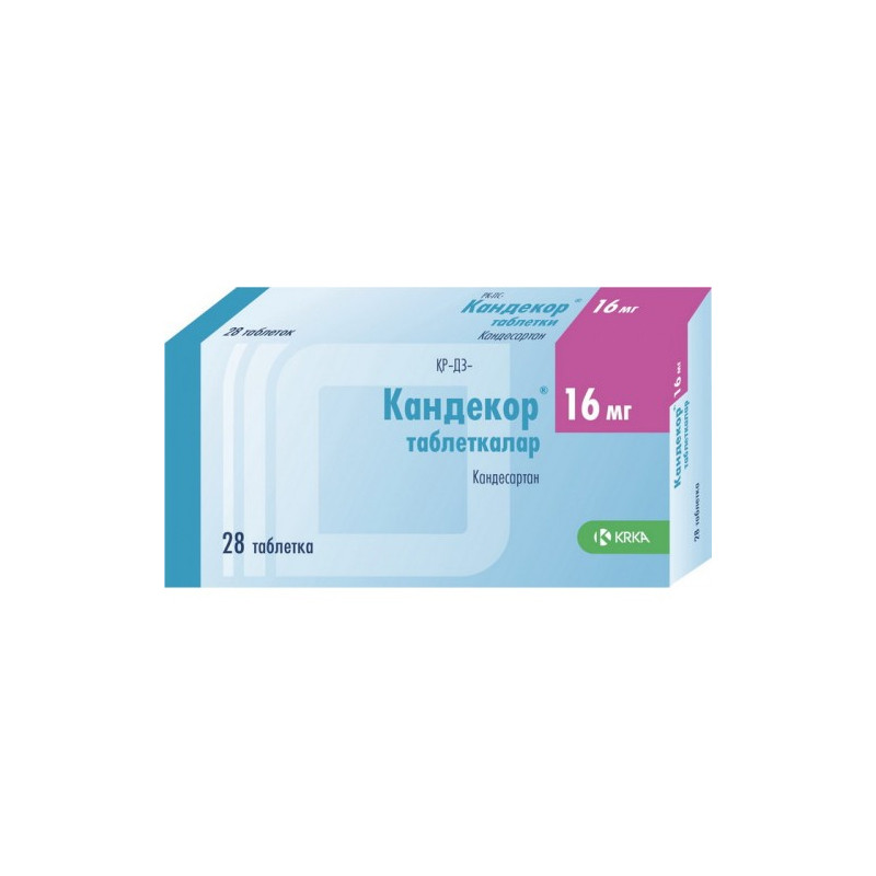Таблетки круглой формы, слегка розового цвета, слегка двояковыпук-лые, с риской на одной стороне и скошенными краями | Состав+Одна таблетка содержиткандесартанацилексетил 8 мг, 16 мг или 32 мг | Противопоказания+-повышенная чувствительность к активному веществуи вспомогательным веществам- беременность и период лактации-тяжелая печеночная недостаточность и / или холестаз | Побочные действия+При леченииартериальнойгипертензии:часто (от больше или равно 1/100 до‹1/10)- инфекция дыхательных путей- головокружение/ вертиго, головная боль- повышение уровня С-АЛТ (С-ГПТ), увеличение содержаниякреатинина, мочевины или калия и уменьшение содержания натрияСдругими ингибиторамиренин-ангиотензин-альдостероновой системы наблюдалось незначительноеснижение уровня гемоглобина.При лечении сердечной недостаточности:часто (от больше или равно 1/100 до‹1/10)- гиперкалиемия, повышение уровня креатинина, мочевины- артериальная гипотензия- почечная недостаточностьВ постмаркетинговый период:очень редко (‹1/10,000).- лейкопения, нейтропенияиагранулоцитоз- гиперкалиемия,гипонатриемия- головокружение, головная боль- тошнота- повышениеактивности печеночных ферментов, нарушение функции печени илигепатит- отек Квинке, сыпь, крапивница, зуд- боль в спине, артралгия, миалгия- почечная недостаточность, в том числе нарушенная функция почек упредрасположенных пациентов | Способ применения+Кандекор® следует принимать один раз в день, внезависимости от приема пищи.Артериальная гипертензияРекомендуемая начальная доза и обычная поддерживающая доза — 8 мг один раз в сутки. Доза может быть увеличена до 16 мг в сутки. Если артериальное давление недостаточно контролируется после 4-х недельного лечения 16 мг в сутки, дозу можно увеличить до максимальной дозы 32 мг в сутки. Если при применении данной дозы контроль артериального давления не достигается, следует рассмотреть альтернативные методыТерапия должна подбираться в соответствии с реакцией артериального давления. Большинство антигипертензивных эффектов достигается в течение 4-х недель с начала лечения.В случае,если терапия Кандекор® не приводит к снижению артериально-го давления до оптимального,рекомендуется перевести пациента на ком-бинированные формы Кандекора®(кандесартан/гидрохлоротиазид)У пациентов пожилого возрастакорректировки дозы не требуется.Упациентов с истощением интраваскулярного объемарекомендуемая на-чальная доза 4 мг.У пациентов с нарушенной функцией почек, включая пациентов на гемодиализе- рекомендуемая начальная доза составляет 4 мг. Доза должна подбираться в соответствии с ответной реакцией. У пациентов с очень тяжелой или терминальнойстадией почечной недостаточности (клиренс креатинин ‹15 мл/мин)опыт применения ограничен.Для пациентов с легкой и умеренной степенью печеночной недостаточности рекомендуемая начальная доза составляет 2 мг один раз в день. Дозу можно подбирать в соответствии с ответной реакцией. Опыта применения у пациентов с тяжелой степенью печеночной недостаточностинет.Хроническая сердечная недостаточностьОбычная рекомендуемая начальная доза Кандекора® составляет 4 мг один раз в сутки. Повышение до запланированной дозы 32 мг в сутки или досамой максимальной путем удвоения дозы допускаетсяс интервалом не менее 2-х недель.Подбор начальной дозы для пациент