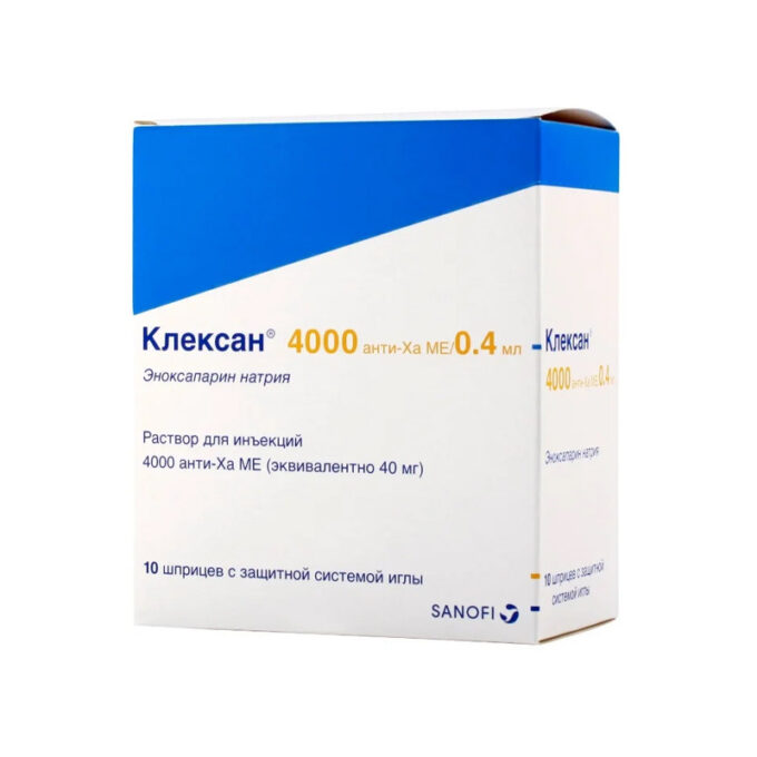 Прозрачный раствор от бесцветного до бледно-желтого цвета. | Состав+1 мл раствора содержитэноксапарин натрия 100 мг (10000 анти-Ха МЕ) | Противопоказания+- повышенная чувствительность к эноксапарину натрия, гепарину или егопроизводным, включая другие низкомолекулярные гепарины? наличие в анамнезе тяжёлой, индуцированной гепарином тромбоцитопении II типа (ГИТ), вызванной нефракционированным гепарином или низкомолекулярным гепарином (см. «Особые указания»)? кровотечение или склонность к кровоточивости, связанная с нарушением гемостаза (возможным исключением из этого противопоказания может быть синдром диссеминированной внутрисосудистой свёртываемости, если она не связана с лечением гепарином) (см. «Особые указания»)- органические изменения органов со склонностью к кровоточивости- продолжающееся кровотечение в клинически значимой степени- внутримозговое кровотечение (первые 24 часа)- тяжёлая почечная недостаточность (из-за отсутствия соответствующих данных), (клиренс креатинина около 30 мл/мин по формуле Кокрофта) за исключением больных на диализе.Клексан в дозе 2000 анти-Ха МЕ/0,2 мл и 4000 анти-Ха МЕ/0,4 млне рекомендуется применять в профилактических дозах пациентам старше 65 лет:- в комбинации с ацетилсалициловой кислотой в обезболивающих, жаропонижающих и противовоспалительных дозах- в комбинации с нестероидными противовоспалительными средствами (НПВС) при системном применении- в комбинации с декстраном 40 при парентеральном примененииКлексан в дозе 6000 анти-Ха МЕ/0,6 мл; 8000 анти-Ха МЕ/0,8 мл; 10000 анти-Ха МЕ/1,0 мл не рекомендуется в следующих случаях:- острый обширный ишемический инсульт головного мозга с потерей сознания или без неё. Если инсульт обусловлен эмболией, нельзя применять Клексан в первые 72 часа. Эффективность лечебных доз НМГ всё ещё не установлена, не зависимо от причины, распространенности и тяжести клинических проявлений инфаркта головного мозга.- острый инфекционный эндокардит (за исключением некоторых эмбологенных заболеваний сердца);- почечная недостаточность лёгкой и средней степеней тяжести (клиренс креатинина между 30 и 60 мл/мин).- в комбинации с ацетилсалициловой кислотой в обезболивающих,жаропонижающих и противовоспалительных дозах- в комбинации c НПВС при системном применении- в комбинации с декстраном 40 при парентеральном применении | Побочные действия+- геморрагические проявления, связанные с сопутствующими факторами риска: органические изменения со склонностью к кровотечению и некоторые лекарственные комбинации (см. «Лекарственные взаимодействия»), возраст, почечная недостаточность, низкая масса тела; геморрагические проявления также связанные с несоблюдением терапевтических рекомендаций, особенно, касающихся длительности лечения и корректирования дозы на основании массы тела (см. «Особые указания»).- гематома на месте подкожного введения инъекции с возможным появлением твёрдых узловых образований в результате воспалительной реакции, разрешающихся в течение нескольких дней, их появление не требует отмены лечения. Риск развития гематомы возрастает при несоблюдении рекомендуемой техники введения инъекции и при использовании несоответствующего инъекционного материала.- тромбоцитопения двух типов:I тип — самый частый, обычно, носит умеренный характер (более 100 000/мм3), возникает на ранних 