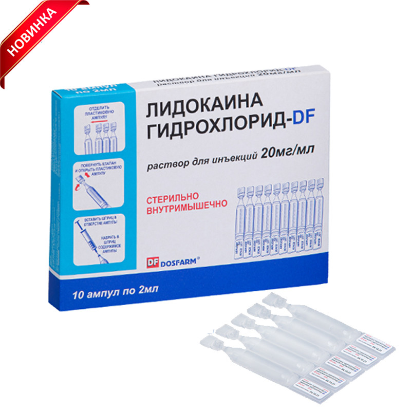 Прозрачная, бесцветная или слегка желтоватого цвета жидкость. | Состав+Одна ампула раствора содержит:лидокаина гидрохлорид 40 мг в 2 мл или 35 мг в 3.5 мл и 50 мг в 5 мл | Противопоказания+- Гиперчувствительность к любому из компонентов лекарственного средства или другим амидным местноанестезирующим лекарственным средствам в анамнезе- синдром слабости синусового узла (особенно у больных пожилого возраста), значительное снижение функции левого желудочка- синдром Вольфа-Паркинсона-Уайта- блокады сердца: атриовентрикулярная II — III степени (за исключением случаев, когда введен зонд для стимуляции желудочков), внутрижелудочковая; синусно-предсердная- нарушения внутрижелудочковой проводимости- кардиогенный шок- ретробульбарное введение (особенно больным глаукомой)- порфирия- синдром Морганьи-Адамса-Стокса- для анестезии в акушерской практике — нарушения внутриутробного развития плода, фетоплацентарная недостаточность, недоношенность, переношенность, гестоз- для эпидуральной анестезии — тяжелая гипотензия, кардиогенный шок и гиповолемический шок, неврологические заболевания, септицемия, невозможность проведения пункции из-за деформации позвоночника- для субарахноидальной анестезии — боль в спине, инфекции головного мозга, доброкачественные и злокачественные новообразования головного мозга, коагулопатии различного генеза, мигрень, субарахноидальное кровоизлияние, артериальная гипертензия и гипотензия, парестезии, психоз, истерия, неконтактные больные, невозможность проведения пункции из-за деформации позвоночника- эпилептиформные судороги при предшествующем применении Лидокаина (в анамнезе)- детский и подростковый возраст до 18 летС осторожностью: при тяжелой форме сердечной недостаточности, тяжелой печеночной и/или почечной недостаточности, у ослабленных больных, при гиповолемии, AV блокаде, синусовой брадикардии, артериальной гипотензии, тяжелой миастении, беременности и в период лактации. | Побочные действия+Нарушения со стороны нервной системы:часто — парестезии, головокружение;нечасто — признаки системной нейротоксичности (судороги, парестезия вокруг рта, онемение языка, тремор, бред, сонливость, дизартрия, потеря сознания), редко — нейропатия, повреждения периферических нервов, арахноидит.Нарушения со стороны органов зрения:редко — диплопия (двоение в глазах).Нарушения со стороны сердца:часто — брадикардия;редко — аритмия, остановка сердца.Нарушения со стороны сосудов:очень часто — гипотензия;часто — гипертензия.Нарушения со стороны дыхательной системы, органов грудной клетки и средостения:редко — дыхательная недостаточность, угнетение и остановка дыхания.Нарушения со стороны иммунной системы:редко — аллергические реакции (крапивница, кожные высыпания, отек Квинке, в более тяжелых случаях — анафилактический шок).Нарушения со стороны желудочно-кишечного тракта:очень часто — тошнота;часто — рвота. | Способ применения+Перед применением лидокаина обязательно проведение кожной пробы на повышенную индивидуальную чувствительность к препарату, о которой свидетельствует отек и покраснение места инъекции.Для проведения анестезии количество лекарственного средства и общая доза зависит от вида анестезии и характера оперативного вмешательства.При инфильтрационной анестезии используется до 30 мл 