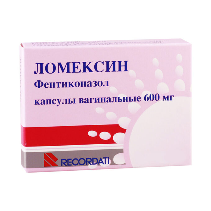 Мягкие, овальные, блестящие капсулы желтоватого цвета, содержащие густую однородную маслянистую cуcпензию белого цвета | Состав+Одна капсула содержит:фентиконазола нитрат 200 мг, 600 мг, 1000 мг | Противопоказания+- повышенная чувствительность к компонентам препарата- беременность и период лактации- детский и подростковый возраст до 18 лет | Побочные действия+Очень редко:- легкое покраснение, чувство жжения в месте применения препарата.Ломексин, как правило, хорошо переносится, побочные эффекты носят транзиторный характер и не требуют отмены препарата. | Способ применения+Капсулы вагинальные 200 мг — одну капсулу вводят глубоко во влагалище в положении лежа перед сном 1 раз в сутки в течение 3 дней;Капсулы вагинальные 600 мг — одну капсулу вводят глубоко во влагалище в положении лежа перед сном однократно. Если симптомы сохраняются, возможно повторное применение одной капсулы через 3 дня.Капсулы вагинальные 1000 мг — одну капсулу вводят глубоко во влагалище в положении лежа перед сном однократно.При трихомониазе и смешанных инфекциях, вызванных Trichomonas vaginalis и Candida albicans возможно повторное применение одной капсулы через 24 часа.При кандидозе — если симптомы сохраняются, возможно повторное применение одной капсулы через 3 дня.Во избежание реинфицирования рекомендуется одновременно проводить лечение партнера кремом (Ломексин, крем вагинальный 2 %), который наносят на головку полового члена и крайнюю плоть. | Показания к применению+- вульвовагинальный кандидоз- кольпиты- вагинальные выделенияЛомексин, капсулы вагинальные 1000 мг также применяются при:- вагинальном трихомониазе- смешанных инфекциях, вызванных Trichomonas vaginalis и Candida albicans. | МНН: ФентиконазолОбъем: 600 мгАртикул: A01-0003358