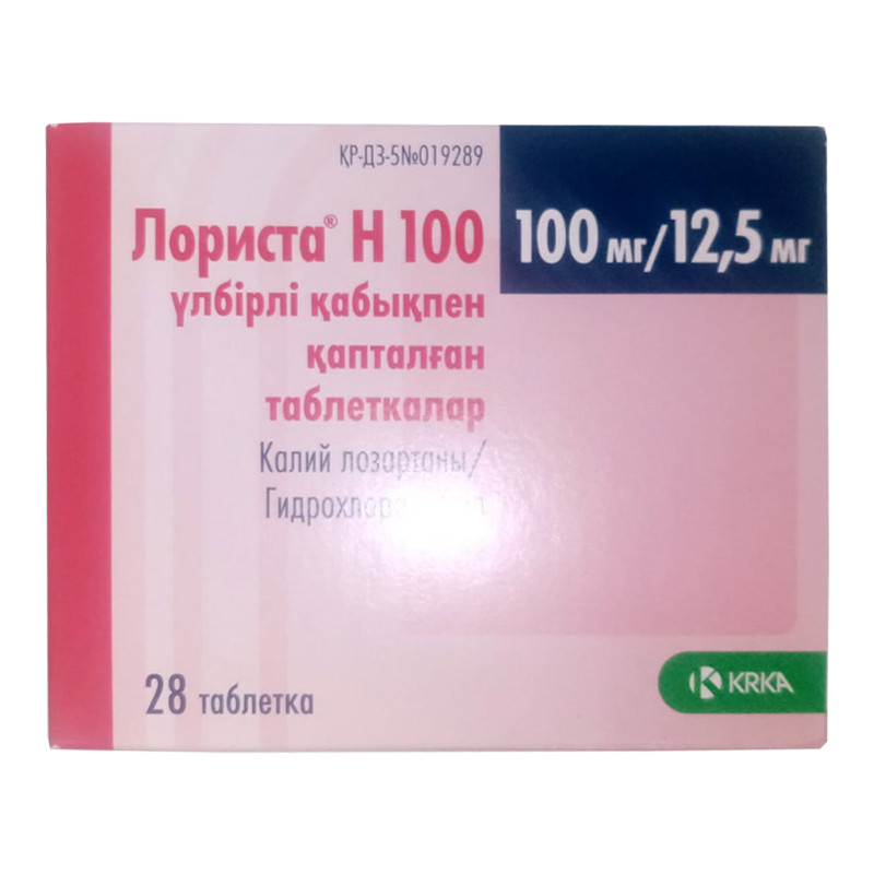 Таблетки овальной формы, с двояковыпуклой поверхностью, покрытые пле-ночной оболочкой белого цвета | Состав+Одна таблетка содержитлозартана калия — 100.00 мггидрохлоротиазида — 12.50 мг | Противопоказания+- повышенная чувствительность к компонентам препарата- выраженная артериальная гипотензия, гиповолемия- гипокалиемия или гиперкальциемия, не поддающияся лечению- рефрактерная гипонатриемия- симптоматическая гиперурикемия/подагра- тяжелая печеночная недостаточность; холестаз и обструкция желчныхпутей- тяжелая почечная недостаточность (клиренс креатинина ‹ 30 мл/мин)- анурия- беременность и период лактации- детский и подростковый возраст до 18 лет (эффективность и безопасностьне изучена) | Побочные действия+Часто (›1/100 до ‹1/10):- головная боль, головокружение, цефалгия- кашель, инфекция верхних дыхательных путей, заложенность носа,синусит, заболевания пазух- боли в области живота, тошнота, диарея, диспепсия- мышечные судороги, боли в спине, боль в ногах, боль в мышцах- астения, усталость, боли в груди- гиперкалиемия, небольшое снижение гематокрита и гемоглобинаНе часто(›1/1,000 до ‹1/100):- анемия, агранулоцитоз, апластическая анемия, гемолитическая анемия,лейкопения, пурпура, тромбоцитопения- анорексия, гиперурикемия, гипокалиемия, гипонатриемия- бессонница, беспокойство, тревожное расстройство, паническое расстрой-ство, спутанность сознания, депрессия, болезненные сны, нарушения сна,сонливость, ухудшение памяти- нервозность, парестезия, периферическая невропатия, тремор, мигрень,обморок- временное затуманенное зрение, чувство жжения или острой боли в глазах,конъюнктивит, снижение остроты зрения, ксантопсия- вертиго, шум в ушах- гипотензия, ортостатическая гипотензия, стерналгия, стенокардия,АВ-блокада II степени, цереброваскулярное нарушение, инфаркт миокарда,учащенное сердцебиение, аритмия (фибрилляция предсердий, синусоваябрадикардия, тахикардия, желудочковая тахикардия, фибрилляция желудоч-ков)- некротизирующий ангиит (васкулит, кожный васкулит)- фарингеальный дискомфорт, фарингит, ларингит, затруднение дыхания,бронхит, носовое кровотечение, ринит, респираторный застой, пневмо-нит, отёк легких- сухость во рту, метеоризм, гастрит, рвота, сиаладенит, запор, спазмы,раздражение желудка, тошнота, диарея- алопеция, дерматит, сухость кожи, эритема, гиперемия, светочувствитель-ность, зуд, сыпь, крапивница, потоотделение, крапивница, токсический эпи-дермальный некролиз- боль в руке, опухание сустава, боль в коленях, скелетно-мышечные боли,боли в плечах, тугоподвижность, артралгия, артрит, коксалгия, фибромиал-гия, мышечная слабость, мышечные судороги- желтуха (внутрипечёночный холестаз), панкреатит- никтурия, частые мочеиспускания, инфекции мочевыводящих путей,глюкозурия, интерстициальный нефрит, почечная недостаточность- сниженное либидо, импотенция- отёк лица, лихорадка- небольшое увеличение уровней мочевины и креатинина в сывороткекровиРедко (›1/10 000 до ‹1/1 000):- гиперкалиемия, повышенный уровень АЛТ- анафилактические реакции, ангиоэдема, аллергическая сыпьОчень редко (‹1/10 000):- увеличение энзимов печени и билирубина- болезнь Шенлейн-Геноха, экхимоз, гемолиз- подагра | Способ применения+Препарат может назначаться с другими антигипертензивными средствами. Таблетки можно принимать независимо от приема пищи, запивая стаканом 