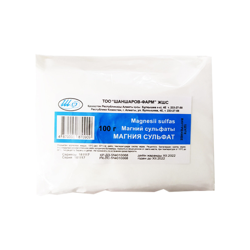 Бесцветные, призматические кристаллы, выветривающиеся на воздухе, горько-соленого вкуса. | Противопоказания+-повышенная чувствительность к магнию сульфату-дети с почечной недостаточностью-грудные дети | Побочные действия+Тошнота, рвота, диарея, обострение воспалительных заболеваний желудочно-кишечного тракта. | Способ применения+Как слабительное назначают внутрь (на ночь или натощак — за полчаса до еды) взрослым 10-30 г на пол стакане воды, детям — из расчета 1 г на 1 год жизни. При хроническом запоре могут применяться клизмы (100 мл 20-30% раствора).Как желчегонное назначают внутрь по 1 столовой ложке 25% (25г разведенной в 100 мл воды) раствора 3 раза в день. | Показания к применению+Запоры. Как желчегонное и спазмолитическое средство при холангитах, холециститах. | МНН: Магния сульфатОбъем: