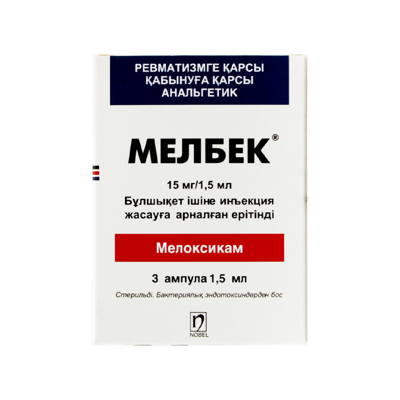 Прозрачная жидкость желтого цвета | Состав+мелоксикам 15 мг | Противопоказания+- повышенная чувствительность к мелоксикаму- бронхиальная астма, полипоз слизистой носа, ангионевротический отекили уртикарные высыпания, вызванные приемом ацетилсалициловойкислоты или других НПВС- язвенная болезнь желудка и двенадцатиперстной кишки в фазе обостре-ния- тяжелая печеночная и почечная недостаточность- беременность и период лактации- детский и подростковый возраст до 18 лет | Побочные действия+- стоматит, отрыжка, тошнота, рвота, боли в животе, метеоризм,эзофагит, гастрит, эрозивно-язвенные поражения желудочно-кишечного тракта, скрытые или явные кровотечения, колит, диарея, запор- преходящие изменения активности трансаминаз, уровня билирубина идругих показателей функции печени- анемия, лейкопения, агранулоцитоз, тромбоцитопения- фотосенсибилизация- кашель, инфекции верхних дыхательных путей, острое нарушение бронхиальной проходимости (острые приступы бронхиальной астмы)- головная боль, головокружение, звон в ушах, потемнение в глазах,бессонница, сонливость, нарушение ориентации, изменение настроения- отеки, повышение АД, сердцебиение, «приливы»- изменение показателей функции почек (повышение креатинина и/илимочевины сыворотки крови), острая почечная недостаточность, интер-стинальный нефрит, гломерулонефрит, почечный медуллярный некроз,нефротический синдром- реакции гиперчувствительности немедленного типа (в т.ч. анафилактические и анафилактоидные реакции), зуд, кожная сыпь, ангионевротический отек, крапивница, буллезные реакции (многоформная эритема, синдром Стивенса-Джонсона, токсический эпидермальный некролиз)- конъюнктивит, нарушения зрения (в т.ч.остроты зрения) и слуха- артралгия, боль в спине- отечность, болезненность в месте введения | Способ применения+Препарат назначают взрослым.Назначают по 0.75 — 1.5 мл (7.5-15 мг мелоксикама) 1 раз в сутки в/м (глубоко). Режим дозирования устанавливают индивидуально с учетом интенсивности воспалительного процесса и выраженности болевого синдрома. Применение инъекционной формы препарата возможно только на протяжении первых 2-3 суток лечения, после чего переходят на прием пероральных лекарственных форм мелоксикама.Рекомендуемая суточная доза — 15 мг/сут.Максимальная суточная доза — 15 мг/сут. | Показания к применению+Для начального и краткосрочного симптоматического лечения при воспалительных и дегенеративных заболеваниях суставов, сопровождающихся болевым синдромом, в том числе- ревматоидный артрит- остеоартрит | МНН: МелоксикамОбъем: 15мг/1,5млАртикул: A02-0001748