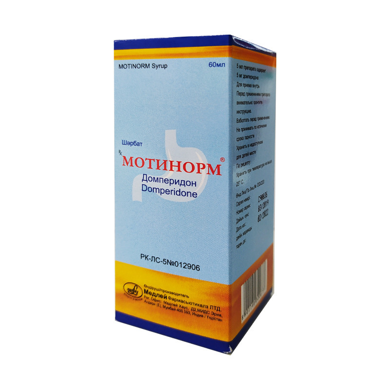 Прозрачная сиропообразная жидкость светло-коричневого цвета с мятным анисовым вкусом. | Состав+5 мл сиропа содержит — домперидона 5 мг | Противопоказания+- желудочно-кишечное кровотечение- механическая непроходимость или перфорация, при которых стимуляция двигательной функции желудка может быть опасна- пролактин-секретирующая опухоль гипофиза (пролактинома)- одновременный прием пероральных форм кетоконазола- повышенная чувствительность к компонентам препарата- беременность и лактация. | Побочные действия+- желудочно-кишечные расстройства (редко), в отдельных случаях — проходящие спазмы кишечника- экстрапирамидные явления; эти явления полностью обратимы и исчезают после прекращения приема препарата- аллергические реакции (очень редко) — крапивница- повышение уровня пролактина в плазме крови, обусловленное тем, что гипофиз находится вне гематоэнцефалического барьера; в редких случаях гиперпролактинемия может стимулировать появление нейро-эндокринных явлений, таких как галакторея, гинекомастия и аменорея. | Способ применения+Препарат назначают внутрь за 15-20 мин. до еды.Хроническая диспепсияВзрослые и дети с массой тела более 35 кг: по 10 мг 3 раза в сутки (по 10 мл сиропа), в случае необходимости, перед сном. Максимальная суточная доза — 80 мг.Дети с массой тела менее 35 кг: по 2,5 мл сиропа на 10 кг массы тела (т. е. 0,25 мг домперидона на 1 кг массы тела), 3 раза в сутки, в случае необходимости, перед сном.При необходимости указанную дозировку можно удвоить (за исключением детей в возрасте до 1 года). Максимальная суточная доза домперидона — 2,4 мг на 1 кг массы тела, но не более 40 мг.Тошнота и рвотаВзрослые и дети с массой тела более 35 кг: по 20 мг (по 20 мл сиропа) 3-4 раза в сутки.Максимальная суточная доза — 80 мг.Дети с массой тела менее 35 кг: по 5 мл сиропа для приема внутрь на 10 кг массы тела (т. е. 0,5 мг домперидона на 1 кг массы тела), 3-4 раза в сутки перед едой и перед сном.Максимальная суточная доза домперидона — 2,4 мг на 1 кг массы тела, но не более 40 мг.При почечной недостаточности рекомендуется уменьшение частоты приема препарата. | Показания к применению+- комплекс диспептических симптомов, часто ассоциирующийся с замедленным опорожнением желудка, желудочно-пищеводным рефлюксом, эзофагитом (чувство переполнения в эпигастрии, ощущение вздутия живота, боль в верхней части живота, отрыжка, метеоризм, тошнота, рвота, изжога и регургитация)- тошнота и рвота функционального, органического, инфекционного происхождения, вызванные радиотерапией, лекарственной терапией или нарушением диеты- тошнота и рвота, вызванные агонистами допамина в случае их применения при болезни Паркинсона (такими как L-допа и бромокриптин)- синдром срыгивания, циклическая рвота, желудочно-пищеводный рефлюкс и другие нарушения моторики желудка у детей. | МНН: ДомперидонАртикул: A02-0001348