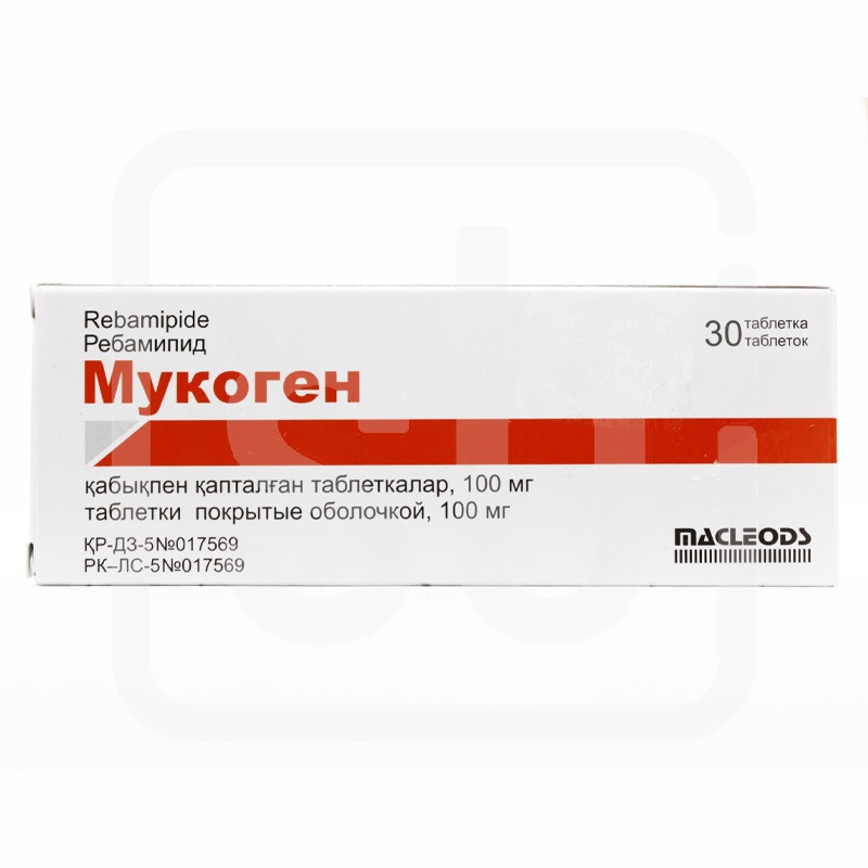 Круглые, двояковыпуклые таблетки, покрытые оболочкой белого цвета, гладкие с обеих сторон | Состав+Одна таблетка содержит- ребамипид 100 мг | Противопоказания+- повышенная чувствительность к ребамипиду и/или вспомогательным компонентам препарата- злокачественные заболевания желудка | Побочные действия+- зуд, кожная сыпь, экзема и другие симптомы гиперчувствительности- изменения вкусовых ощущений, изжога, отрыжка, тошнота, рвота, боль в животе, метеоризм, запор, диарея- нарушения функции печени: повышение активности печеночных трансаминаз в сыворотке крови- лейкопения, гранулоцитопения- нарушения менструального цикла- отеки | Способ применения+ВзрослыеПринимать внутрь по 1 таблетке (100 мг) 3 раза в сутки, запивая небольшим количеством жидкости. Курс лечения составляет 2 — 4 недели, в случае необходимости может быть продлен до 8 недель. | Показания к применению+- язвенная болезнь желудка- острый гастрит, хронический гастрит в фазе обострения- эрадикация H. pylori при лечении гастрита и язвенной болезни желудка. | МНН: РебамипидОбъем: 100 мгАртикул: A02-0023029