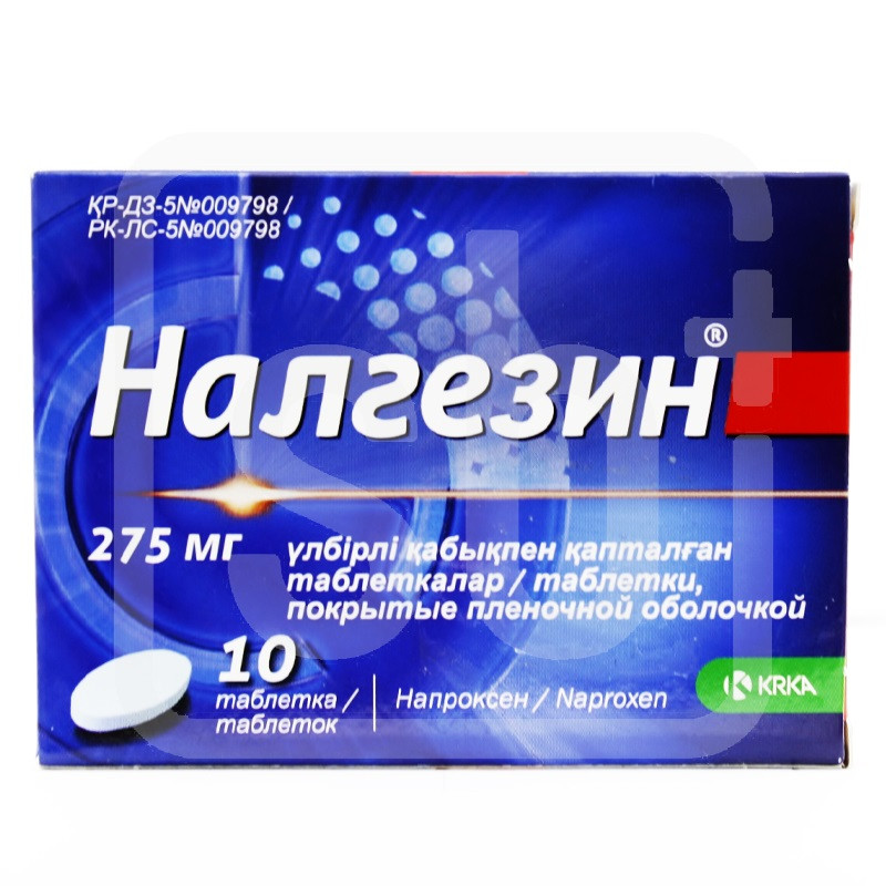 Таблетки овальной формы, слегка двояковыпуклые, покрытые пленочной оболочкой голубого цвета | Состав+1 таблетка, покрытая пленочной оболочкой, содержитнапроксена натрия 275 мг (эквивалентно напроксену 251мг), | Противопоказания+- гиперчувствительность к компонентам препарата, аспирину и к другим не-стероидным противовоспалительным средствам- наличие в анамнезе бронхоспазма, бронхиальной астмы, полипов носа, ри-нита, крапивницы, анафилактических или анафилактоидных реакций, свя-занных с ацетилсалициловой кислотой или другими нестероидными проти-вовоспалительными препаратами (НПВП)- язвенная болезнь желудка или двенадцатиперстной кишки, желудочно-кишечные кровотечения- тяжелая печеночная или почечная недостаточность- тяжелая сердечная недостаточность, состояния после аорто-коронарного шунтирования- гиперкалиемия- беременность и период лактации- детский и подростковый возраст до 18 лет | Побочные действия+часто (› 1 / 100, ‹1 / 10):- запоры, боли в животе, тошнота, диспепсия, диарея, стоматит- головная боль, головокружение, сонливость- зуд, кожная сыпь, кровоподтеки, потливость, пурпура- шум в ушах, нарушение слуха- нарушение зрения- отеки, одышка, сердцебиениене часто(› 1 / 1 000, ‹1 / 100):- желудочно-кишечные кровотечения и / или желудка перфорация, рвота(в том числе кровавая), мелена- повышение печеночных ферментов, желтуха- депрессия, сновидения, невозможность сосредоточиться, бессонница,чувство слабости, мышечные боли, мышечная слабость- алопеция, фотодерматит- нарушения слуха- застойная сердечная недостаточностьПредполагается, что использование некоторых НПВП (особенно в высоких дозах и при длительном лечении) может быть связано с небольшим увеличе-нием риска артериального тромбоза (например, риск развития инфаркта мио-карда или инсульта). Ниже приведены побочные действия, связанные с при-емом НПВП:часто:- жаждане часто:- реакции гиперчувствительности, нарушение менструального цикла,гипертермия (озноб и лихорадка)- клубочковой нефрит, гематурия, интерстициальный нефрит, нефротическийсиндром, почечная недостаточность, почечный папиллярный некроз- эозинофилия, гранулоцитопения, лейкопения, тромбоцитопения- эозинофильный пневмонитединичные случаи (не установлена их связь с применением препарата):- апластическая анемия, гемолитическая анемия- асептический менингит, когнитивная дисфункция- эпидермальный некролиз, мультиформная эритема, фотосенсибилизация,реакции, напоминающие кожную порфирию Тарда и буллезный эпидермо-лиз, синдром Стивенса-Джонсона, крапивница- язвенный стоматит- васкулит- ангионевротический отек, гипергликемия, гипогликемияПри возникновении тяжелых побочных действий, лечение должно быть пре-кращено. | Способ применения+ВзрослыеТаблетки принимают внутрь, запивая достаточным количеством воды, во время еды.Обычная суточная доза для облегчения боли колеблется от 550 мг до 1100 мг напроксена. Начальная доза составляет 550 мг, затем по 275 мг каждые 6 — 8 часов.У пациентов, которые переносят низкие дозы хорошо и не имеют желудочно-кишечных заболеваний в анамнезе, суточная доза может быть увеличена, максимальная суточная доза 1650 мг (в случае чрезвычайно сильных болей), продолжительность лечения не более двух недель.Начальная доза для жаропонижающего действия составляет 550 мг, затем 275 мг каждые 6 — 8 часов.Для проф