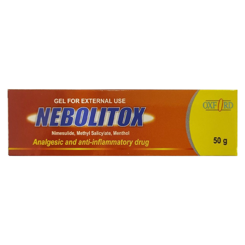 Однородный гель желтого цвета | Состав+1 г геля содержит:нимесулид 10 мг,метилсалицилат 100 мг,ментол ВР 50 мг | Противопоказания+- Повышенная чувствительность к нимесулиду и другим компонентам препарата, ацетилсалициловой кислоте и другим НПВС- дерматозы, повреждения эпидермиса, инфекции кожи в области применения (для геля)- беременность и период лактации- детский возраст до 18 лет | Побочные действия+Побочные действия определены со следующей частотой:Очень часто больше или равно 1/10Часто больше или равно 1/100 — ‹ 1/10Нечасто больше или равно 1/1,000 — ‹ 1/100Редко больше или равно 1/10,000 — ‹ 1/1,000Очень редко ‹ 1/10,000Не известно не может быть оценена частота из имеющихся данныхНарушение со стороны кожи и подкожной клетчаткиНе частоместные реакции- раздражение кожи, кожная сыпь, шелушение, кожный зуд, транзиторное изменение цвета кожи, эритема, шелушение кожи, контактный дерматитНе известносистемные реакции- изжога, тошнота, рвота, диарея, гастралгия, изъязвление слизистой оболочки желудочно-кишечного тракта- задержка жидкости- тромбоцитопения, лейкопения, агранулоцитоз, анемия- повышение активности «печеночных» трансаминаз- удлинение времени кровотечения- гематурия- анафилактический шок- нарушение дыхания при наличии бронхиальной астмыСообщения о предполагаемых побочных реакцияхПредоставление данных о предполагаемых побочных реакциях препарата является очень важным моментом, позволяющим осуществлять непрерывный мониторинг соотношения риск/польза лекарственного средства. Медицинским работникам следует предоставлять информацию о любых предполагаемых неблагоприятных реакциях по указанным в конце инструкции контактам, а также через национальную систему сбора информации. | Способ применения+Назначается местно. Неболитокс гель равномерно наносят, не втирая, на пораженную область столбик геля длиной 3 см 3 — 4 раза в сутки. Гель наносится на чистую и сухую поверхность кожи.Количество геля и частота применения могут варьировать в зависимости от величины обрабатываемого участка и реакции пациента, не более 4 раз в сутки.Максимальная суточная доза составляет 5 мг/кг (1 туба в сутки). Продолжительность применения препарата составляет 10 дней. | Показания к применению+- Местное симптоматическое лечение опорно-двигательного аппаратаразличного происхождения, для уменьшения боли и воспаления:- при травматических повреждениях (ушибы, растяжение связок, мышц исухожилий)- артриты различной этиологии- в комплексном лечении болевого синдрома при ревматизме | Объем: