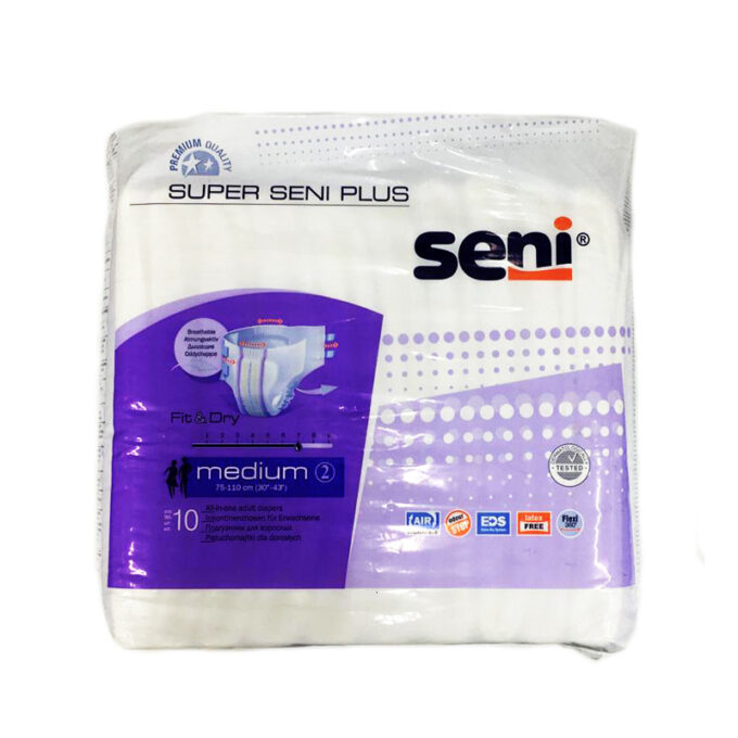 Состав+Целлюлоза, суперабсорбент, нетканые материал, паропроницаемый ламинат | Противопоказания+Индивидуальная непереносимость материалов, из которых изготовлено изделия | Способ применения+I (активация подгузника), II.a ( надевание в положения стоя), II.b (надевание в положении лежа). | Показания к применению+Подгузники для взрослых для средней и тяжелой степени недержания, паропроницаемые по всей поверхности под товарным знаком SENI: SUPER SENI в размере extra large (4). Изделия предназначены для впитывания и удерживания мочи, используются для ухода за больными страдающими недержанием мочи тяжелой степени, лежачими больными. Комфорт обеспечивает использование паропроницаемого ламината-кожа дышит. ГОСТ Р 55082-2012 | Объем: