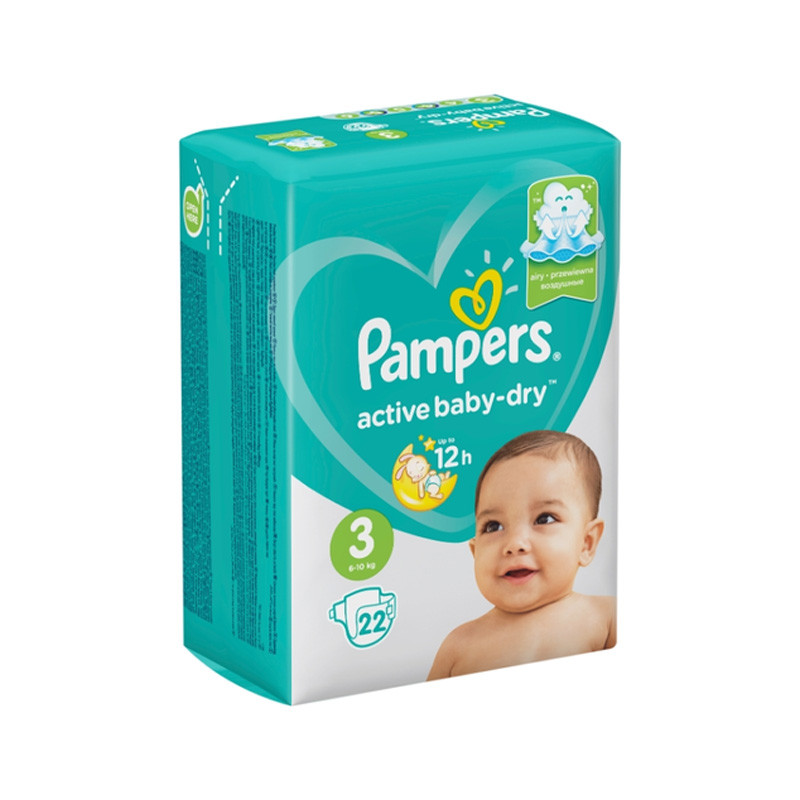 Подгузники Pampers Active Baby-Dry с воздушными каналами подарят сухость на всю ночь коже малыша. Циркуляция воздуха внутри подгузника позволяет коже малыша оставаться сухой и дышать, а дополнительный слой помогает равномерно распределять влагу внутри подгузника Преимущества: 1) Уникальные воздушные каналы: обеспечивают воздушную сухость всю ночь. 2) Внутренний слой с жемчужными микрогранулами надежно впитывает и удерживает влагу. 3) Тянущиеся боковые застежки: обеспечивают комфортную посадку, защищая от протеканий. 4) Дизайн с милыми рисунками. На 100% безопасные: клинически и дерматологически протестированы, без вредных веществ. Для идеального комфорта и защиты кожи малыша используйте вместе с салфетками Pampers Aqua Pure, которые содержат органический хлопок, 99% чистой воды и 1% очищаюшего средства, поэтому подойдут даже самой чувствительной коже. | Состав+Petrolatum, Stearyl Alcohol, Paraffinum Liquidum, Aloe Barbadensis Leaf Extract | Показания к применению+Подгузники Pampers Active Baby-Dry с воздушными каналами подарят сухость на всю ночь коже малыша. | Объем: Без дозировкиАртикул: A01-0007233