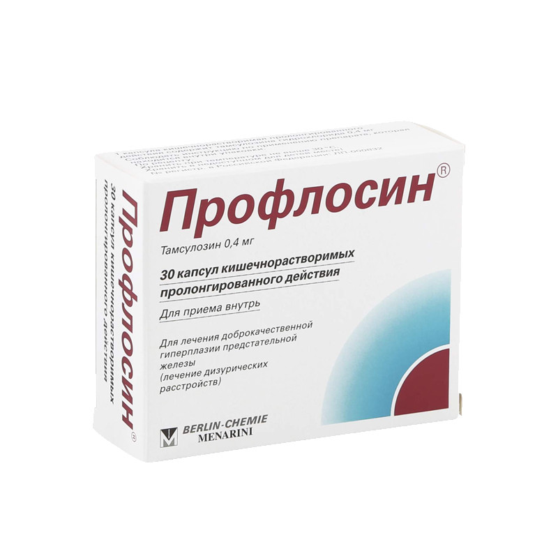 Твердые желатиновые капсулы с корпусом оранжевого цвета и крышкой оливкового цвета. На верхушке корпуса и крышечки нанесено по одной черной линии. На крышечке черными чернилами напечатан код «TSL 0.4». Содержимое капсул — гранулы белого или почти белого цвета. | Состав+Одна капсула содержитЯдро гранултамсулозина гидрохлорид 0,4мг | Противопоказания+- гиперчувствительность к тамсулозину либо вспомогательным веществам, включая развитие ангионевротического отека в связи с применением тамсулозина-случаи ортостатической гипотонии в прошлом (ортостатическая гипотония в анамнезе)-тяжелая недостаточность функции печени | Побочные действия+Часто(›1/100, ‹1/10)-головокружениеИногда (›1/1 000, ‹1/100)-головная боль, тахикардия, ортостатическая гипотония, астения- ринит, запор, понос, тошнота, рвота- сыпь, кожный зуд, крапивница- нарушения эякуляцииРедко (›1/10 000, ‹1/1 000)- обморок- ангионевротический отекОчень редко (‹1/10 000)- приапизм | Способ применения+По одной капсуле в день после завтрака либо первого приема пищи. Капсулу следует проглатывать целиком, не разжевывая, в положении стоя или сидя (не лежа), запивая стаканом воды. Капсулу нельзя делить на части или разламывать, так как это может повлиять на высвобождение активного вещества пролонгированного действия. Длительность применения препарата зависит от природы заболевания, степени его тяжести и особенностей его протекания и устанавливается лечащим врачом. | Показания к применению+-терапия симптомов нижних мочевых путей (СНМП), обусловленных доброкачественной гиперплазией предстательной железы (ДГПЖ). | МНН: ТамсулозинОбъем: