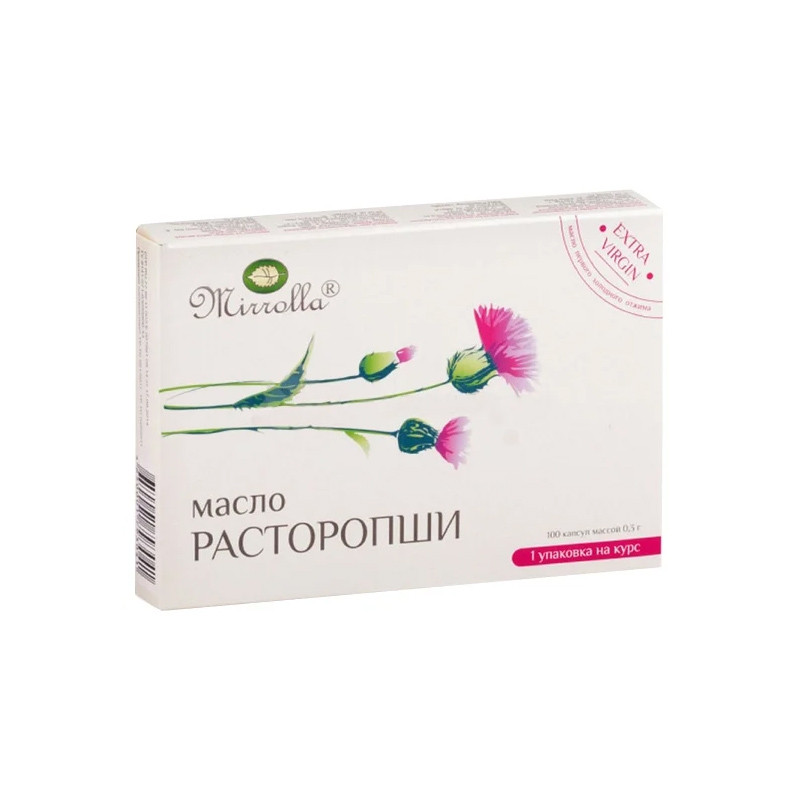 Состав+Масло расторопши пятнистой нерафинированное, D-альфа-токоферола ацетат, оболочка капсулы: (желатин пищевой, глицерин, лимонная кислота). | Противопоказания+Индивидуальная непереносимость компонентов, беременность, кормление грудью. Перед применением рекомендуется проконсультироваться с врачом. | Способ применения+Взрослым и детям старше 14 лет по 2 капсулы (массой 0,3 г) 2 раза в день. или по 2 капсулы (массой 0,7 г) 1 раз в день, или по 1 капсуле (массой 1,3 г) 1 раз в день во время еды. Продолжительность приема — 4-6 недель. При необходимости прием можно повторить. Возможны повторные приемы в течение года. | Показания к применению+В качестве биологически активной добавки к пище — дополнительного источника линолевой кислоты, витамина Е. | Объем: 0,3 грАртикул: A02-0023042