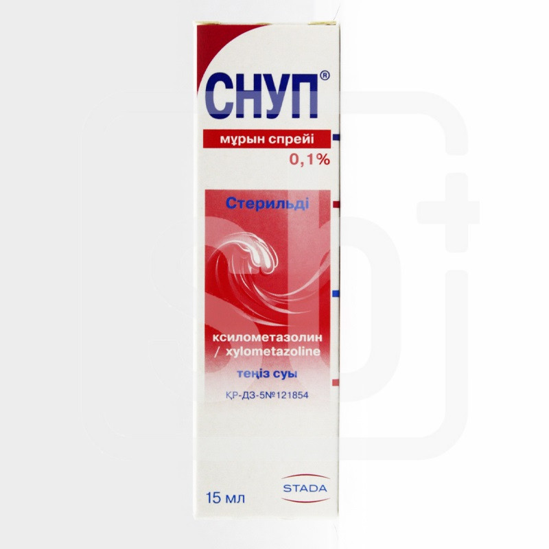 Прозрачный бесцветный раствор | Состав+100 мл спрея содержатксилометазолина гидрохлорид 0,05 г или 0,1 г | Противопоказания+- гиперчувствительность к активному веществу или любому другому компоненту препарата- атрофический ринит- состояния после транссфеноидальной гипофизэктомии или других хирургических вмешательств, затрагивавших твердую мозговую оболочку, в том числе в анамнезе- беременность, период лактацииСнуп®, назальный спрей 0,05%- детский возраст до 2 летСнуп®, назальный спрей 0,1%- детский возраст до 6 лет | Побочные действия+Часто (больше или равно 1/100 — ‹1/10)- жжение и сухость слизистой оболочки носа, чиханиеНечасто (больше или равно 1/1000 — ‹1/100)- возобновление заложенности носа после снижения противоотечного действия, носовые кровотечения- аллергические реакции (ангионевротический отек, зуд, кожные высыпания)Редко (больше или равно 1/10000 — ‹1/1000)- сердцебиение, тахикардия, повышение артериального давленияОчень редко (‹1/10000)- аритмия- головная боль, усталость, сонливость или бессонница, беспокойство, седативный эффект, судороги и галлюцинации (преимущественно у детей)- апноэ (у детей младшего возраста и новорожденных) | Способ применения+Снуп®, назальный спрей 0,05%Детям в возрасте от 2 до 6 лет — по 1 впрыскиванию в каждый носовой ход 1-3 раза в день.Снуп®, назальный спрей 0,1%Взрослым и детям старше 6 лет — по 1 впрыскиванию в каждый носовой ход 1-3 раза в день.Препарат не следует применять чаще 3 раз в день. Продолжительность курса лечения не должна превышать 5-7 дней. | Показания к применению+- ринит при острых респираторных заболеваниях- аллергический ринит- для улучшения оттока секрета при воспалении околоносовых пазух, а также при катаральном воспалении среднего уха, связанном с простудными заболеваниями | МНН: КсилометазолинОбъем: 0,1%Артикул: A01-0003562