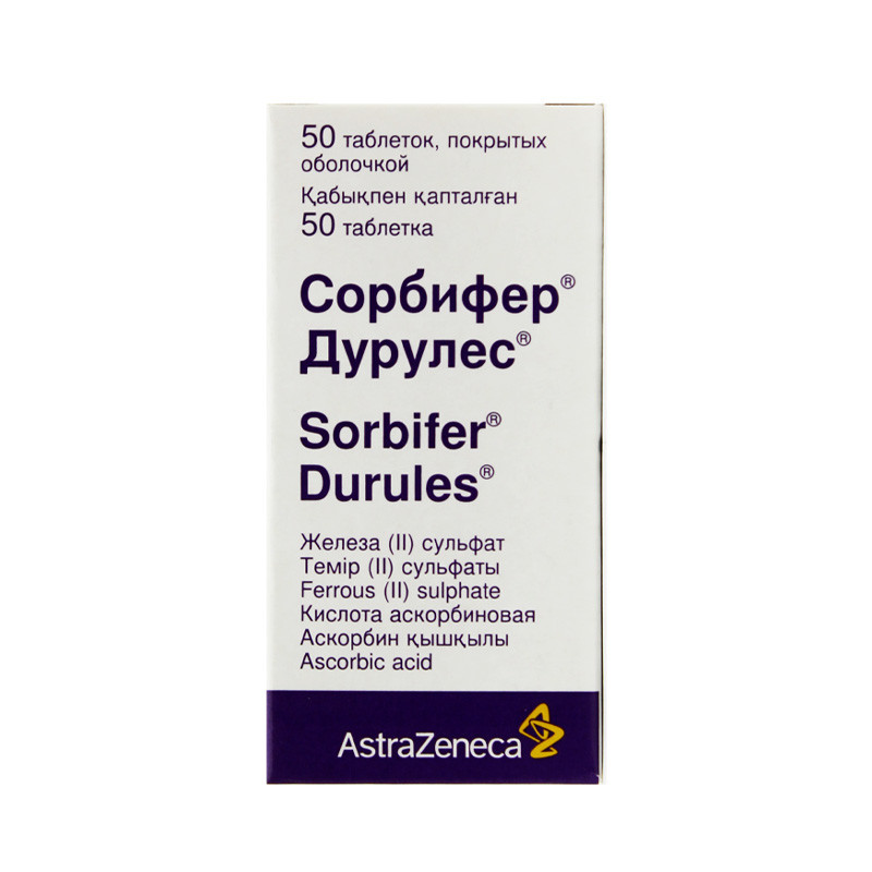 Чечевицеобразные, слегка двояковыпуклые таблетки, покрытые оболочкой, охра-желтого цвета, с гравировкой «Z» на одной стороне, с характерным запахом | Состав+Одна таблетка содержитжелеза сульфат (двухвалентный) в количестве 320мг, эквивалентном 100мг Fe2+ ,аскорбиновая кислота 60мг | Противопоказания+- повышенная чувствительность к активному или любому другому неактивному компоненту препарата- стеноз пищевода и/или обструктивные изменения пищеварительного тракта- повышенное содержание железа в организме (гемосидероз, гемохроматоз)- нарушение утилизации железа (свинцовая анемия, сидеробластическая анемия, гемолитическая анемия)- детский возраст до 12 лет (из-за отсутствия клинических данных) | Побочные действия+Частота побочных эффектов со стороны пищеварительной системы нарастает с повышением дозы от 100 до 400 мг в сутки.Часто (›1/100):- тошнота, боль в животе, диарея, запорРедко (‹1/100):- язвенное поражение пищевода, стеноз пищевода- аллергические реакции (зуд, сыпь, гиперемия)- гипертермия | Способ применения+Таблетку следует принимать целиком, не разжевывая и не менее чем за полчаса до приема пищи, запивая половиной стакана воды.Взрослым и подросткам старше 12 лет:Рекомендуемая доза по 1 таблетке 2 раза в сутки (утром и вечером).Пациентам с железодефицитной анемией II-III степени в случае необходимости по рекомендации врача дозу можно повысить до 3-4 таблеток 2 раза в сутки (утром и вечером) при длительности применения в течение 3-4 месяцев.В период беременности:Препарат применяется в случае установленного дефицита железа (при железодефицитной анемии и латентном дефиците железа в организме)Профилактическая доза по 1 таблетке в сутки.Лечебная доза: по 1 таблетке 2 раза в сутки (утром и вечером).Лечение следует проводить до нормализации уровня гемоглобина и продолжать до полного насыщения депо железа еще в течение 2-х месяцев. Индивидуальная длительная терапия (с перерывами или без) показана при регулярно возникающей значительной потери железа (например, при обильных менструациях). | Показания к применению+- железодефицитная анемия- латентный дефицит железа в организме (без анемии), связанный с чрезмерными потерями железа (кровотечения, в том числе маточные, постоянное донорство), неполноценное питание- состояния, сопровождающиеся повышенной потребностью организма в железе (профилактика при беременности, лактации и у доноров крови) | Артикул: A02-0001719