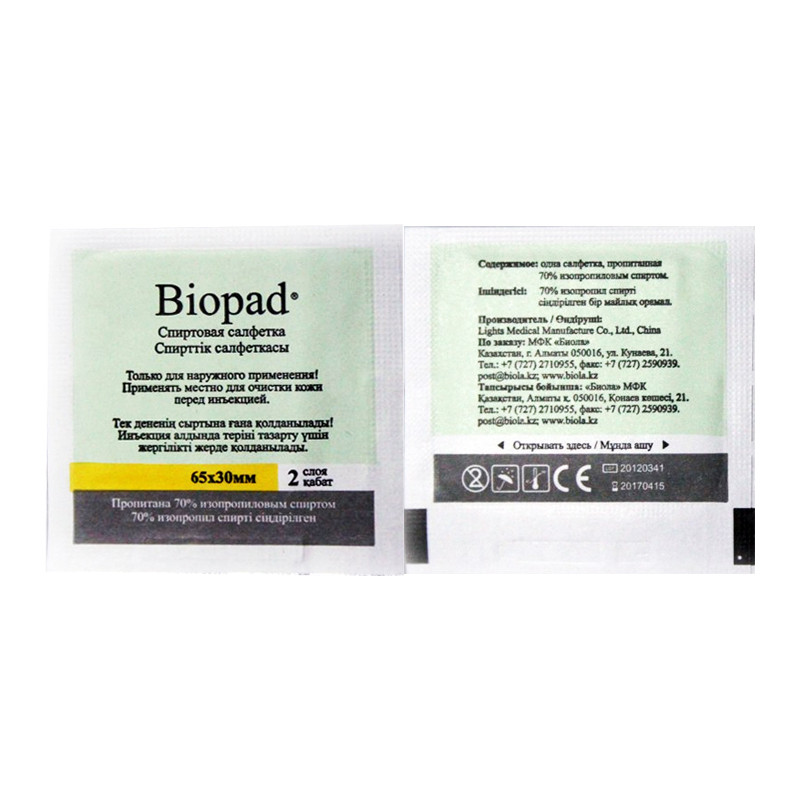 Размеры изделия: 65 мм на 30 мм.; 65 мм на 56 мм.; 60 мм на 100 мм.; 150 мм на 120 мм. Содержание изопропилового спирта в пропитывающем растворе — 70%; количество пропитывающего состава в салфетке — не менее 0,3 г. | Противопоказания+повышенная чувствительность к компонентам | Побочные действия+аллергические реакции и местное раздражение | Способ применения+1. Проверить целостность индивидуальной упаковки изделия2. Вскрыть индивидуальную упаковку3. Извлечь салфетку и произвести обработку требуемой поверхности | Показания к применению+В ЛПУ при стационаре и при амбулаторном лечении, а также в домашних условиях. | Объем: