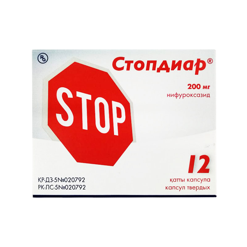 Тaблетки, покрытые пленочной оболочкой жёлтого цвета, круглой формы, с двояковыпуклой поверхностью, диаметром около 9.0 мм. | Состав+Одна таблетка содержитнифуроксазид 100 мг | Противопоказания+- Повышенная индивидуальная чувствительность к компонентам препарата, в том числе к другим производным 5-нитрофурана- непереносимость фруктозы, синдром мальабсорбции глюкозы-галактозы, дефицит сахаразы-изомальтазы- детский возраст до 18 лет | Побочные действия+Часто- боли в животе, тошнота, диарея- кожная сыпьРедко- гранулоцитопения | Способ применения+СТОПДИАР таблетки рекомендуется принимать внутрь.Препарат назначают по 200 мг (2 таблетки) 4 раза/сут. Препарат принимают независимо от приема пищи через равные промежутки времени (каждые 6 ч). Курс лечения в назначенных дозах составляет не более 7 дней.Во время лечения острой диареи препаратом, обязательным является постоянное пероральное или внутривенное восполнение дефицита жидкости в организме, в зависимости от общего состояния пациента. | Показания к применению+- Острая и хроническая диарея бактериального происхождения- острые пищевые токсикоинфекции | МНН: НифуроксазидОбъем: 100 мгАртикул: A01-0004355