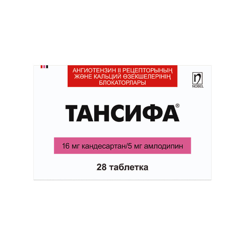 Таблетки продолговатой формы розового цвета с маркировкой «16» на одной стороне и белого цвета с маркировкой «5» на другой стороне (для дозировки 16 мг/5 мг).Таблетки продолговатой формы розового цвета с маркировкой «16» на одной стороне и белого цвета с маркировкой «10» на другой стороне (для дозировки 16 мг/10 мг). | Состав+Одна таблетка содержиткандесартана цилексетила 16.000 мг и амлодипина бесилата 6.945 мг и 13.890 мг (эквивалентно амлодипину 5.0 мг и 10.0 мг соответственно) | Противопоказания+Повышенная чувствительность к кандесартану цилексетилу, амлодипину или другим производным дигидропиридина или к любым вспомогательным веществам препарататяжелые нарушения функции печени и/или холестазприменение в комбинации с препаратами, содержащими алискирен, у пациентов с сахарным диабетом или с умеренной или тяжелой почечной недостаточностью (скорость клубочковой фильтрации ‹60 мл/мин/1,73 м?)тяжелая артериальная гипотензияшоковое состояние (включая кардиогенный шок)обструкция пути оттока левого желудочка (например, стеноз аорты высокой степени тяжести)гемодинамически нестабильная сердечная недостаточность после острого инфаркта миокардабеременность и период грудного вскармливаниядети и подростки в возрасте до 18 летНеобходимые меры предосторожности при примененииПациенты с нарушениями функции почекНа фоне терапии препаратом ТАНСИФА®, как и при применении других средств, влияющих или действующих на ренин-ангиотензин-альдостероновую систему, у восприимчивых к кандесартану пациентов могут отмечаться нарушения функции почек.При применении препарата ТАНСИФА® у пациентов с артериальной гипертензией и тяжелой почечной недостаточностью рекомендуется периодически контролировать содержание калия и концентрацию креатинина в сыворотке крови. Клинический опыт применения препарата у пациентов с тяжелыми нарушениями функции почек или терминальной стадией почечной недостаточности ограничен. Таким пациентам следует осторожно титровать дозу кандесартана под тщательным контролем артериального давления.У пациентов с хронической сердечной недостаточностью необходимо периодически контролировать функцию почек, особенно у пациентов в возрасте 75 лет и старше, а также у пациентов с нарушением функции почек. При повышении дозы также рекомендуется контролировать содержание калия и концентрацию креатинина.Амлодипин может применяться у таких пациентов в обычных дозах. Изменения концентрации амлодипина в плазме крови не коррелируют со степенью почечной недостаточности. Амлодипин не является диализуемым.Пациенты с сердечной недостаточностьюПациентам с сердечной недостаточностью следует лечиться с осторожностью. У пациентов с тяжелой сердечной недостаточностью (NYHA класса III и IV) частота отека легких была выше в группе, получавшей амлодипин, чем у пациетов, не получавших амлодипин. Блокаторы кальциевых каналов, включая амлодипин, следует использовать с осторожностью у пациентов с застойной сердечной недостаточностью, поскольку они могут увеличить риск сердечно-сосудистых осложнений и смертности в будущем.Совместное применение с ингибиторами АКФ при хронической сердечной недостаточностиПри применении в комбинации с ингибиторами АКФ может увеличиваться риск развития побочных эффектов, особенно нарушения функции почек и ги