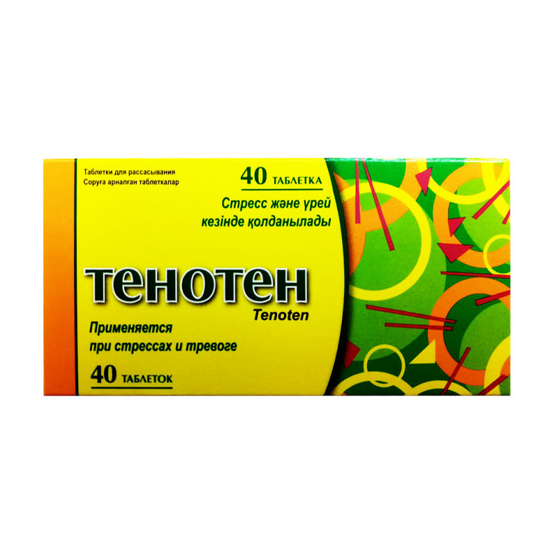 Таблетки плоскоцилиндрической формы с риской и фаской, от белого до белого с кремоватым или сероватым оттенком цвета. На плоской стороне с риской нанесена надпись MATERIA MEDICA, на другой плоской стороне нанесена надпись TENOTEN. | Состав+Одна таблетка содержитантитела к мозгоспецифическому белку S-100 аффинно очищенные — смесь гомеопатических разведений С12, С30, С200 — 0.003г | Противопоказания+- повышенная индивидуальная чувствительность к компонентам препарата | Побочные действия+- при применении по указанным показаниям побочного действия не выявлено | Способ применения+На один прием рассасывать во рту одну, а при тяжелых состояниях — две таблетки (держать во рту до полного растворения). В зависимости от выраженности нарушений осуществлять от 1 до 6 приемов препарата в день. Курс лечения — 1-3 месяца; при необходимости курс лечения можно продлить до 6 месяцев или повторить через 1-2 месяца. | Показания к применению+- невротические и неврозоподобные расстройства с проявлениями тревоги и депрессии- астенические состояния- заболевания, сопровождающиеся эмоциональным напряжением, агрессией, вегетативными расстройствами, страхом, апатией, пониженной активностью- органические поражения ЦНС, в том числе состояния после острого нарушения мозгового кровообращения (инсульты)- энцефалопатии- черепно-мозговая травма- болезнь Паркинсона- заболевания ЦНС, сопровождающиеся нарушением интеллектуально-мнестических функций (в том числе деменцией). | Артикул: A02-0002417