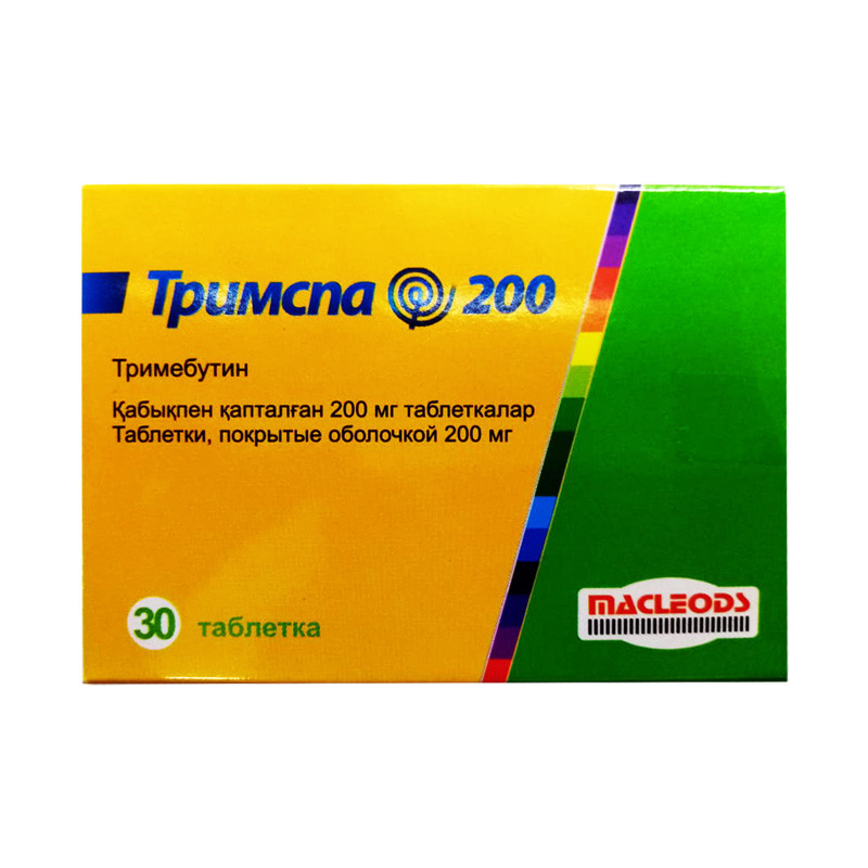 Таблетки, покрытые пленочной оболочкой, белого цвета, двояковыпуклые, круглой формы, с гладкой поверхностью с обеих сторон | Состав+Одна таблетка, покрытая оболочкой, содержиттримебутин малеат 200 мг | Противопоказания+- известная гиперчувствительность к тримебутину или любому другому ингре-диенту препарата- детский возраст до 12 лет. | Побочные действия+- сухость во рту, изменение вкусовых ощущений, диарея, диспепсия, боль в эпигастрии, тошнота и запор- головокружение, утомляемость, ощущения холода/жара, головная боль- аллергические реакции: кожный зуд- расстройства менструации, болезненное увеличение размера молочных желез, тревожность, задержка мочи, расстройства слуха. | Способ применения+Взрослым рекомендуется до 600 мг в сутки: по 1 таблетке 200 мг 3 раза в день перед едой. Курс лечения 2-4 недели. | Показания к применению+В составе комплексной терапии:- функциональные расстройства желудочнокишечного тракта- синдром раздраженного кишечника- паралитический илеус- неязвенная диспепсия- язвенная болезнь желудка- эзофагит и гастроэзофагеальная рефлюксная болезнь (ГЭРБ)- коматозные состояния при цереброваскулярных заболеваниях. | МНН: ТримебутинОбъем: 200 мгАртикул: A01-0007873