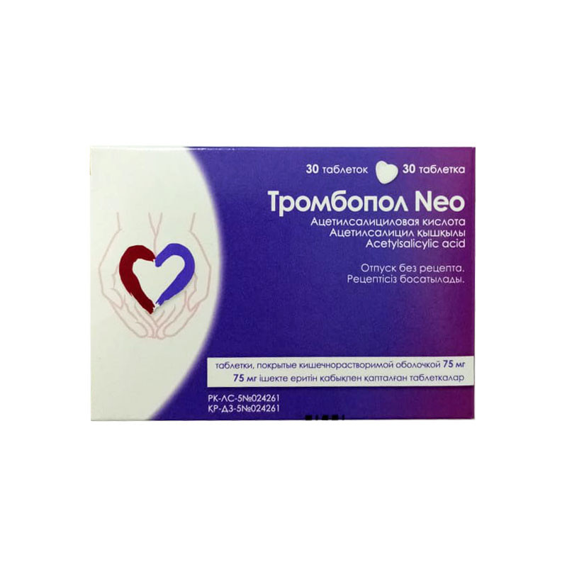 Таблетки в форме сердца, двояковыпуклые, покрытые пленочной оболочкой белого цвета. | Состав+1 таблетка содержитацетилсалициловая кислота 75 мг | Противопоказания+- Повышенная чувствительность к ацетилсалициловой кислоте, другим салицилатам или к какому-либо вспомогательному веществу препарата- геморрагический диатез- язвенная болезнь желудка и (или) двенадцатиперстной кишки, в фазе обострения- тяжелая почечная недостаточность- тяжелая печеночная недостаточность- тяжелая сердечная недостаточность- приступы так называемой аспириновой астмы в анамнезе, вызванные применением салицилатов или других веществ с подобным действием, в частности нестероидных противовоспалительных препаратов (НПВП)- одновременно с метотрексатом, принимаемым в дозах 15 мг в неделю или более- дозы более 100 мг в сутки в III триместре беременности- подагра- недостаточность глюкозо-6-фосфатдегидрогеназы- дети и подростки в возрасте до 16 лет из-за риска развития синдрома Рейе, редко встречающегося заболевания, вызывающего повреждение печени и мозга | Побочные действия+Часто (от больше или равно 1/100 до меньше 1/10)- симптомы диспепсии (изжога, тошнота, рвота), боль в животеРедко (от больше или равно 1/10 000 до меньше 1/1 000)- серьезные кровотечения: кровотечение из желудочно-кишечного тракта, мозговое кровотечение (особенно у пациентов с неконтролируемой гипертензией и (или) при одновременном применении гемостатических препаратов), которые в единичных случаях потенциально могут угрожать жизни.Кровотечение может привести к острой или хронической анемии в результате кровотечения и (или) анемии из-за недостатка железа (например, в результате скрытых микрокровотечений) с соответствующими лабораторными и клиническими проявлениями, такими как слабость, бледность, гипоперфузия- воспаление желудка и кишечника, язвенная болезнь желудка и (или) двенадцатиперстной кишки, очень редко приводящие к кровотечению и прободению, характеризующиеся соответствующими клиническими симптомами и результатами лабораторных анализов- преходящие нарушения функции печени с увеличением активности аминотрансферазОчень редко (меньше 1/10 000)- тяжелые аллергические реакции, включая анафилактический шок- гипогликемия- нарушения функции почекC неизвестной частотой (на основании доступных данных, частота не может быть определена)- повышенный риск кровотечения, увеличение продолжительности кровотечения- периоперационное кровотечение, гематомы, кровотечение из носа, кровотечение из мочеполовых путей, кровотечение из десен- аллергические реакции, включая астму, кожные реакции, сыпь, крапивницу, отек, зуд, нарушения работы сердца и дыхательной системы- головокружение и шум в ушах обычно являющиеся симптомами передозировкиСообщение о случаях неблагоприятных побочных реакцийПосле выпуска лекарственного препарата в обращение необходимо сообщать о случаях подозреваемых побочных действий. Это позволяет проводить мониторинг соотношения польза/риск лекарственного препарата. Медицинский персонал должен сообщать обо всех случаях подозреваемых побочных реакций. | Способ применения+Для приема внутрь.Таблетки покрыты кишечнорастворимой оболочкой и не распадаются в желудке, в результате чего уменьшается раздражающее действие АСК на слизистую оболочку желудка.Таблетки следует принимат