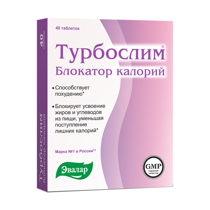«Турбослим Блокатор калорий» обусловлена активным и разносторонним действием его натуральных компонентов. Экстракт белой фасоли блокирует усвоение углеводов, т.к. снижает активность фермента ?-амилазы, отвечающей за расщепление крахмала, в результате чего снижается уровень расщепления сложных углеводов на простые. Нерасщепленные углеводы не усваиваются и выводятся из организма. Молекулы хитозана содержат аминогруппы, которые притягивают молекулы жиров, тем самым препятствуя их усвоению. Связанные жиры выводятся из организма в неизменном виде. Экстракт гарцинии камбоджийской содержит гидроксилимонную кислоту, которая препятствует образованию холестерина и жирных кислот, уменьшает концентрацию лептина – гормона, вызывающего чувство голода, снижает уровень сахара в крови. Экстракт фенхеля богат балластными веществами, стимулирует работу кишечника. Оказывает успокаивающее, противоспастическое, противовоспалительное, спазмолитическое, мочегонное, желчегонное, антидиспептическое действие. Хрома пиколинат (органическая форма) поддерживает нормальный физиологический уровень глюкозы в крови, что в свою очередь способствует подавлению влечения к сладкому. | Состав+Хитозан, целлюлоза микрокристаллическая (носитель), экстракт фасоли, экстракт гарцинии, экстракт фенхеля, компоненты пленочного покрытия (пищевые добавки): гидроксипропилметилцеллюлоза (загуститель), диоксид титана (краситель), полиэтиленгликоль (глазирователь), твин 80 (эмульгатор); диоксид кремния аморфный и стеарат кальция растительного происхождения (агенты антислеживающие), хрома пиколинат | Противопоказания+Индивидуальная непереносимость компонентов, беременность, кормление грудью. Перед применением рекомендуется проконсультироваться с врачом. | Способ применения+Взрослым и детям старше 14 лет по 2 таблетки 3 раза в день во время еды.Не менее 1 месяца. Допускается регулярный прием с 10-и дневным перерывом. | Показания к применению+Для реализации населению через аптечную сеть и специализированные магазины, отделы торговой сети в качестве биологически активной добавки к пище — источника хитозана, хрома и гидроксилимонной кислоты для лиц, контролирующих массу телаРекомендуется в качестве биологически активной добавки к пище — источника хитозана, хрома и гидроксилимонной кислоты для лиц, контролирующих массу тела. | Объем: 0.56 гр №40Артикул: A01-0001431