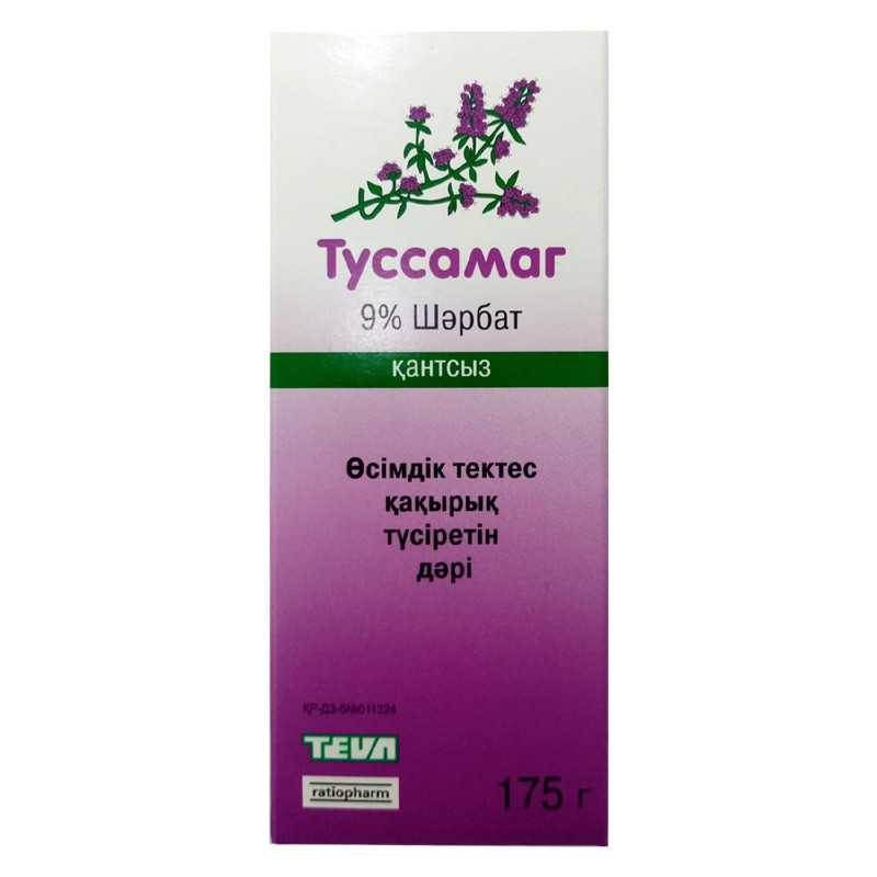 Коричневая сиропообразная сладковатая жидкость с характерным запахом тимьяна | Состав+100 г сиропа содержатжидкий экстракт тимьяна 9,0 г | Противопоказания+- декомпенсация сердечной деятельности- повышенная индивидуальная чувствительность к препарату- дети до 1 года. | Побочные действия+- возможны аллергические реакции при повышенной индивидуальной чувст-вительности к компонентам препарата. | Способ применения+Применяется внутрь.- взрослые: 3-4 раза в день по 2-3 чайные ложки (10-15 мл)- дети старше 5 лет и подростки: 3-4 раза в день по 1-2 чайные ложки (5-10 мл)- дети от 1 до 5 лет: 2-3 раза в день по 1 чайной ложке (5 мл)Курс лечения составляет 5-7 дней. В случае сохранения кашля после 7 днейнеобходимо обратиться к врачу. | Показания к применению+- заболевания верхних дыхательных путей с трудно отделяемой мокротой (бронхиты, трахеиты, трахеобронхиты, коклюш и др.) в составе комплекс-ной терапии. | МНН: ТимьянОбъем: