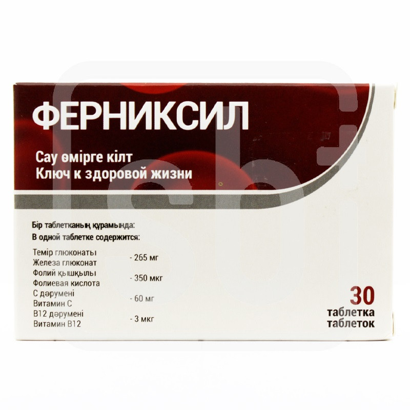 Состав+Витамин С, фолиевая кислота, витамин В12, железа глюконат | Противопоказания+Индивидуальная непереносимость компонентов, гемосидероз. Перед применением рекомендуется проконсультироваться с врачом. | Способ применения+Взрослым по 1 таблетке в день во время еды. Продолжительность приема — 1 месяц. | Показания к применению+Для реализации населению через аптечную сеть и специализированные магазины, отделы торговой сети в качестве биологически активной добавки к пище (далее согласно приложению) | Объем: 550мг/3%Артикул: A02-0023929